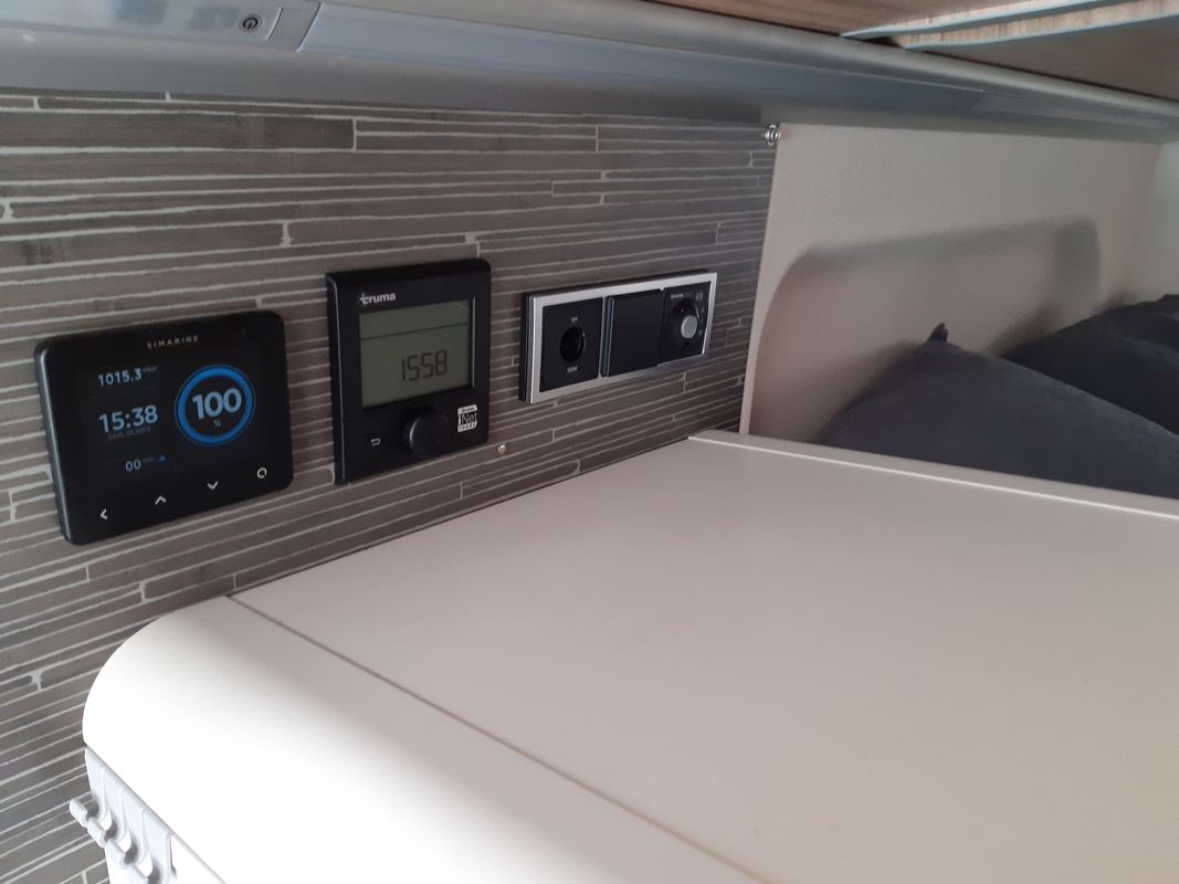 - Tableau de bord Simarine (niveau des réservoirs eaux propres, grises, température int. ext. frigo, inclinomètre roulis tangage, consomation des appareils, performances solaires)