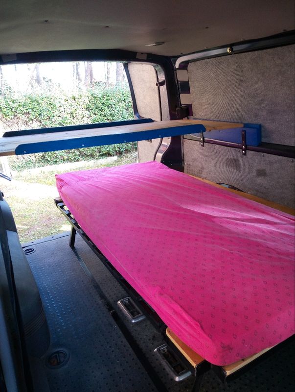 Lit et meuble en dessous sur mesure permettant de transformer le van en 2 secondes.