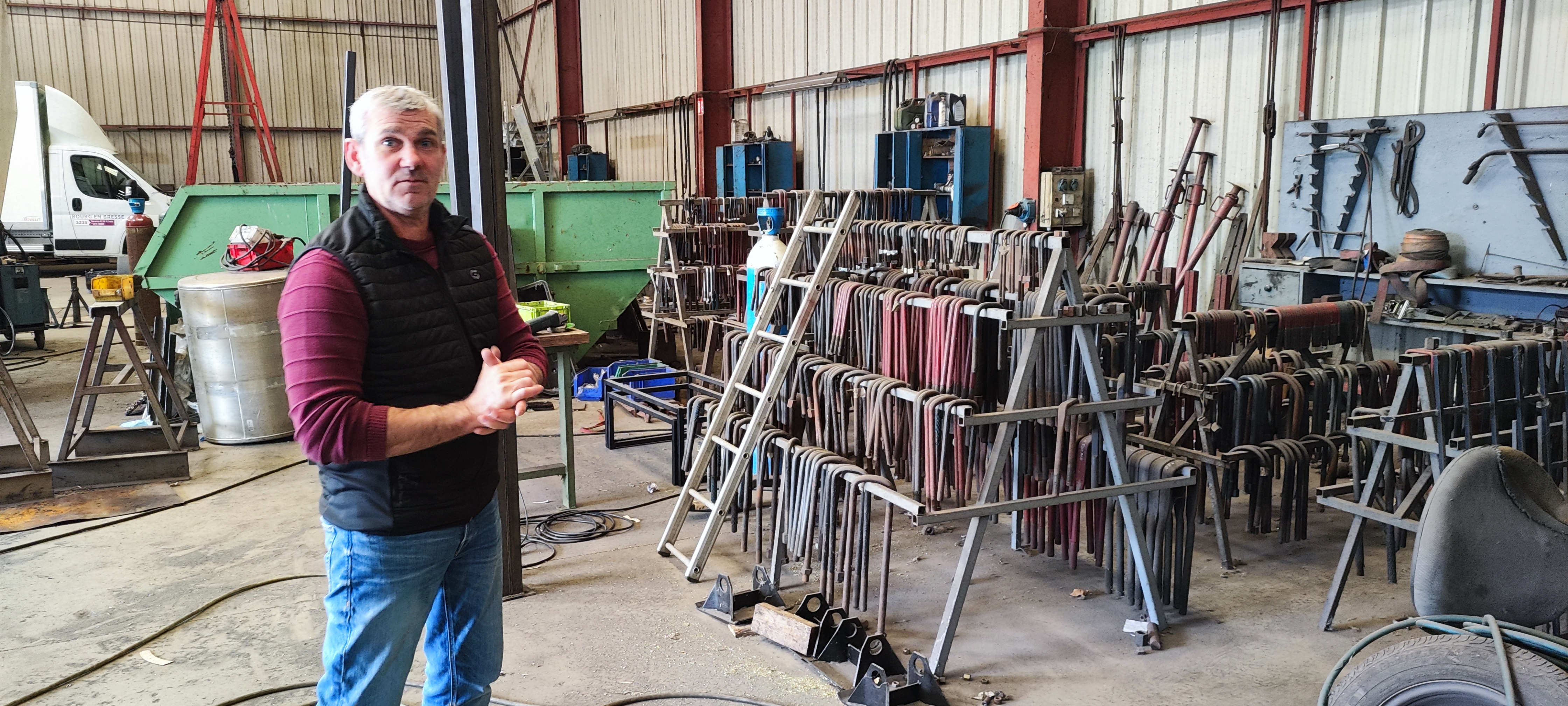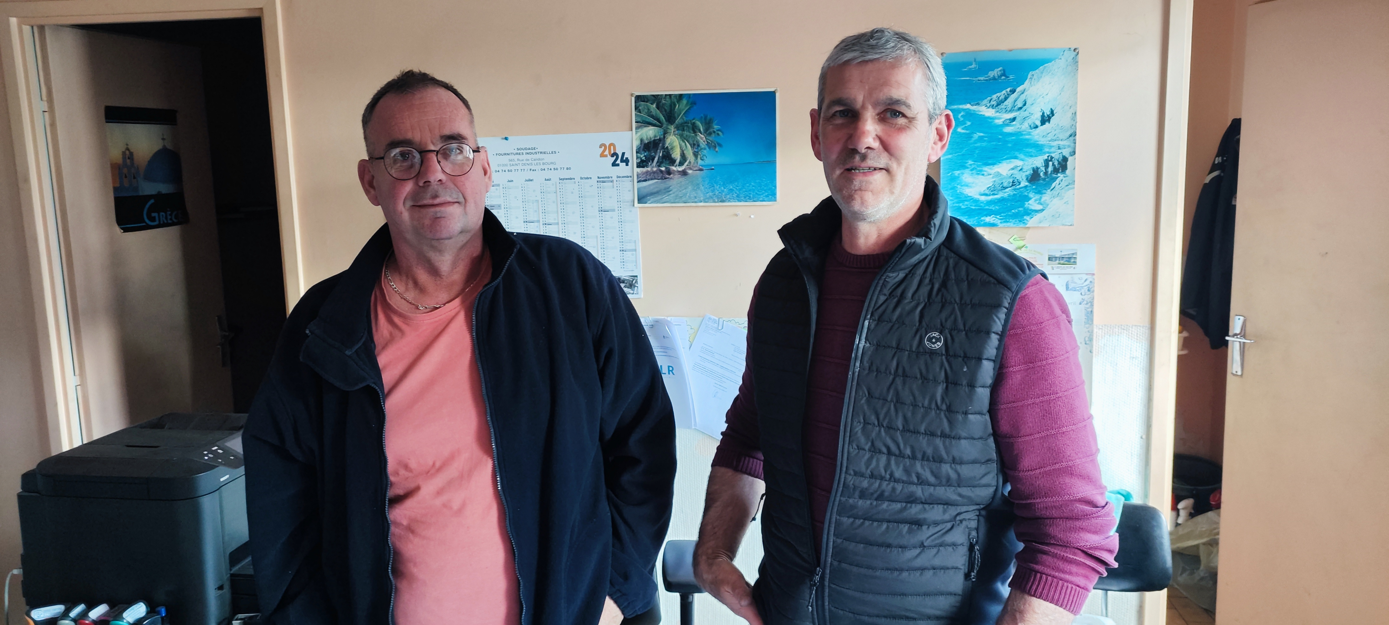 Les cousins Jean-Marc et Christophe, le frère de Jean-Marc, Christian était en train de souder une sellelle en alu à l'atelier.