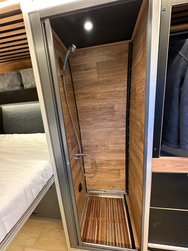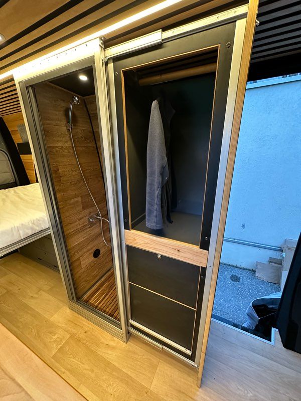 Cabine de douche 60x60cm intégrée dans un meuble penderie escamotable, unique en France !