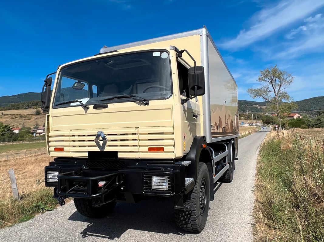 Cabine G300 Renault en très bon état avec vitres électrique, direction assistée, 2 sièges pneumatiques et passage entre la cellule et la cabine, peinture neuve RAL 1014 Ivoire