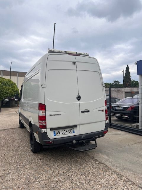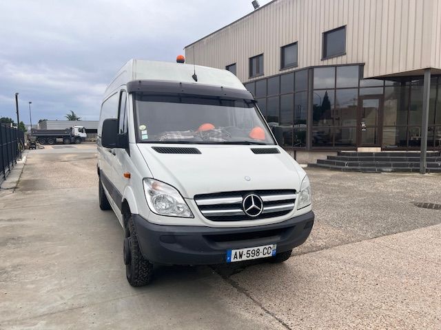 MERCEDES SPRINTER 519 CDI V6 4X4 FOURGON ATELIER équipé dépannage PL avec compresseur à air autonome clef à choc pneumatique avec douilles PL petit chalumeau banc de batteries 24 V câbles de démarrage PL établi rangement cric PL pneumatique rampe de chargement pour pneus gyrophares ext. avant/arrière roue arrières jumelées crochet/boule d'attelage gps