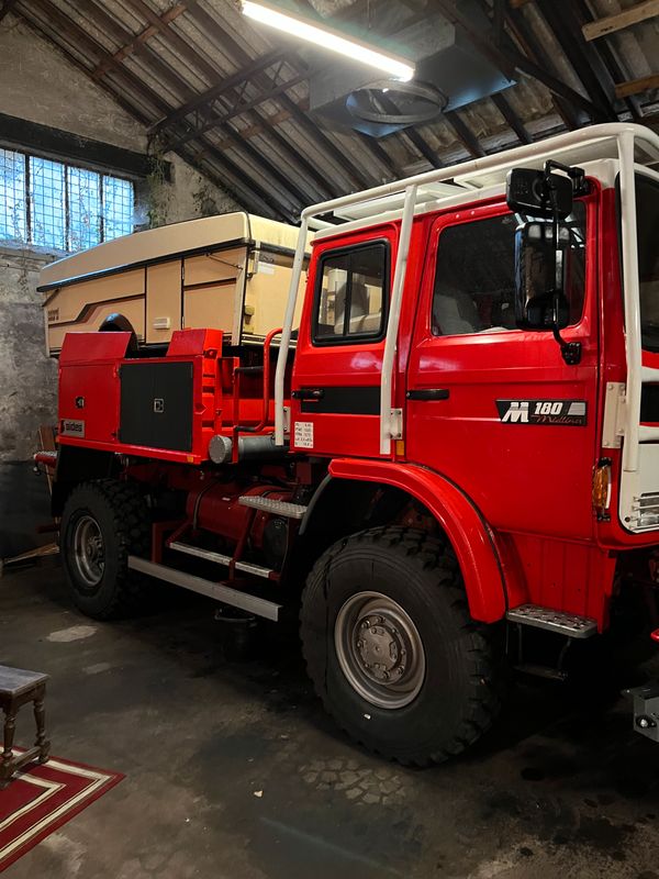 Camion 4X4 d'intervention rapide en feu de foret, transformé en camion atelier, avec une caravane pliante amovible pour les mecaniciens, les cuves ont été transformées en coffre, présence de sieges pneumatiques, boite neuve (facture renault), système de panneaux solaire victron connect 200w, qui permet le 220v, 6 pneux de mixte piste/route Michelin presque neuf, la vidange de tous les fluides est faite, idéal pour transformation en véhicule de voyage