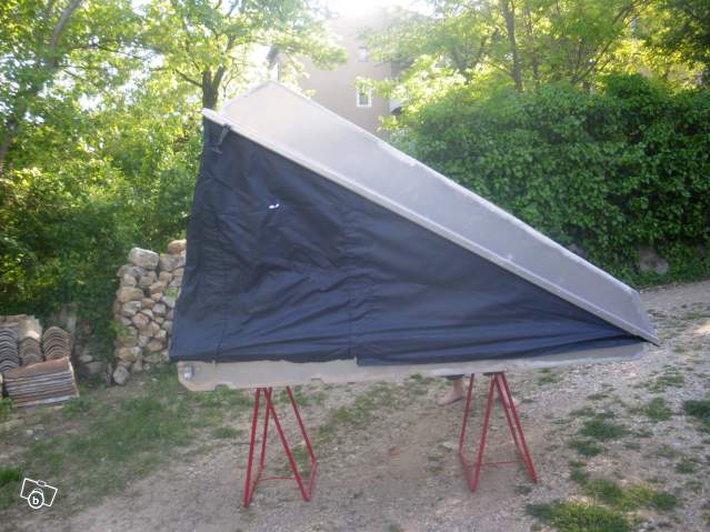 je vends une tente de toit 2 places à restaurer pour bricoleur : Toile déchirée