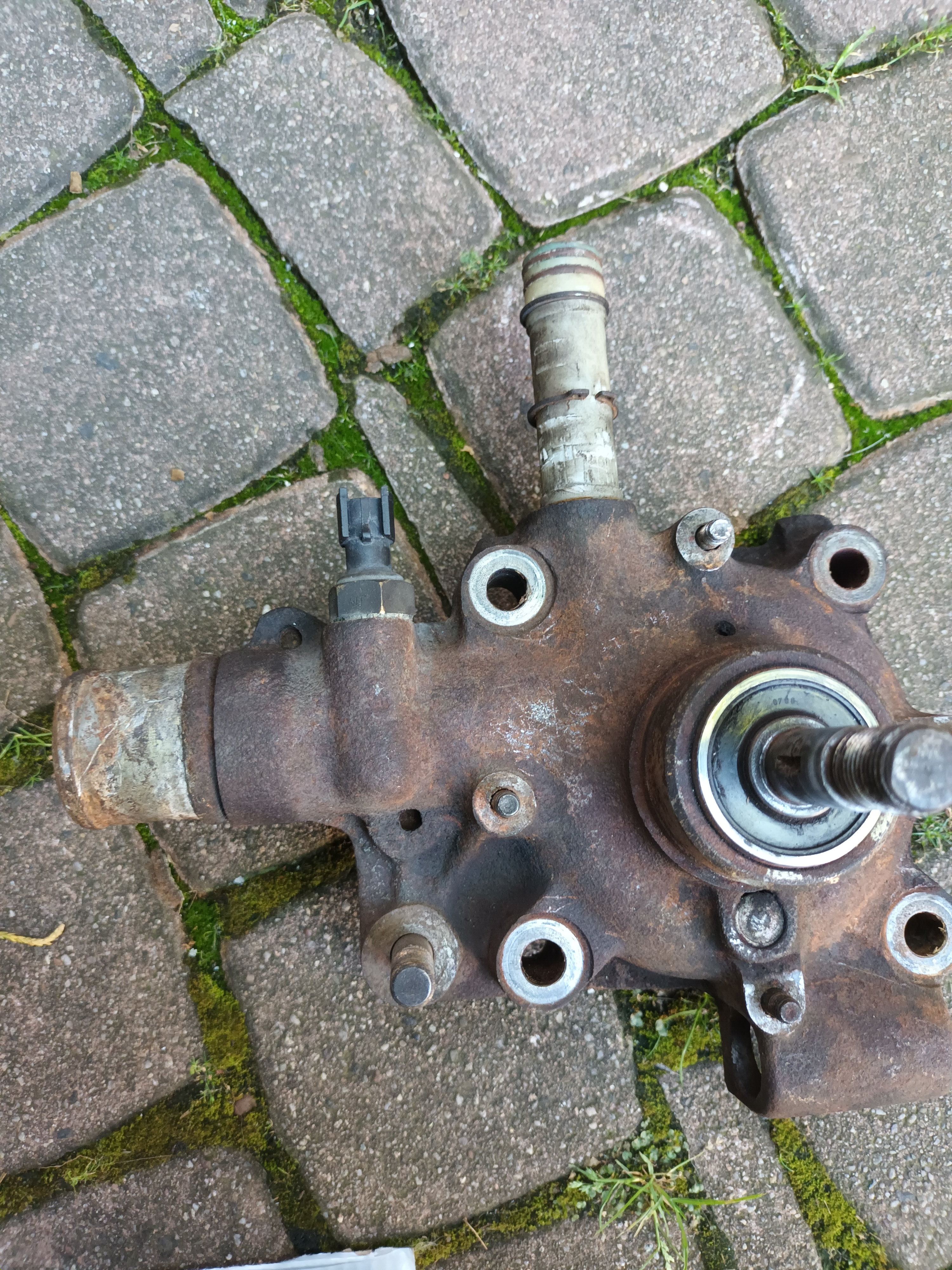 Mon club automobile, l'ADAC, ne voulait pas me remorquer, mais seulement jusqu'à 3,5 tonnes. J'ai appelé un taxi sur l'autoroute et je me suis fait conduire à la prochaine ville avec une sortie d'autoroute. Il y avait là un petit magasin de pièces détachées, et voilà. Il avait toutes les pièces dont j'avais besoin en stock. Pompe à eau, embrayage de ventilateur, tube de purge, courroie trapézoïdale adaptée pour 350€ + 170€ de frais de taxi.