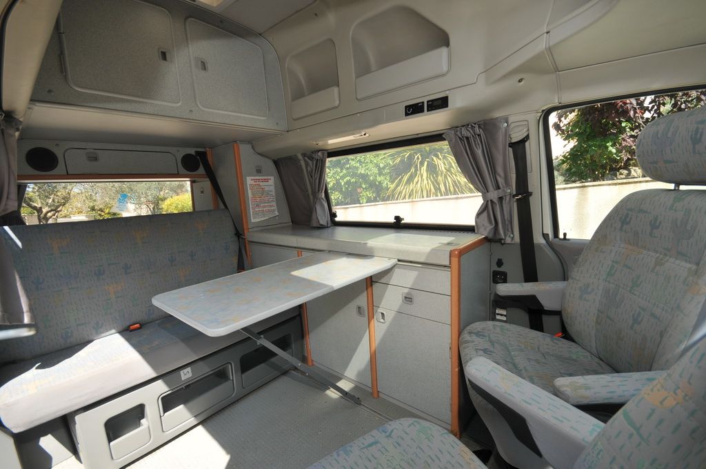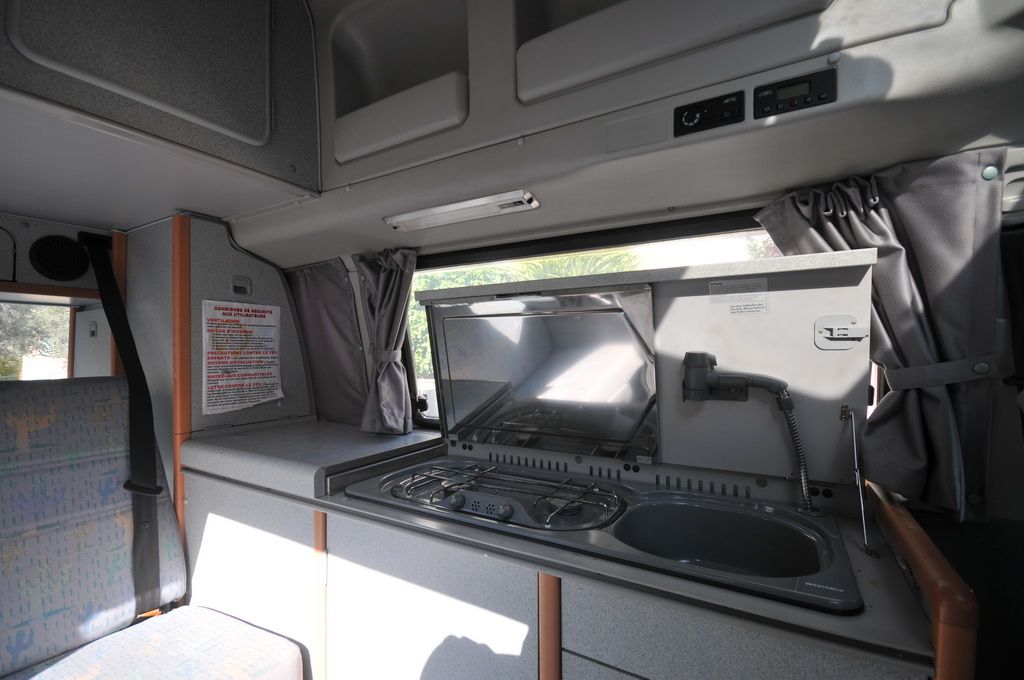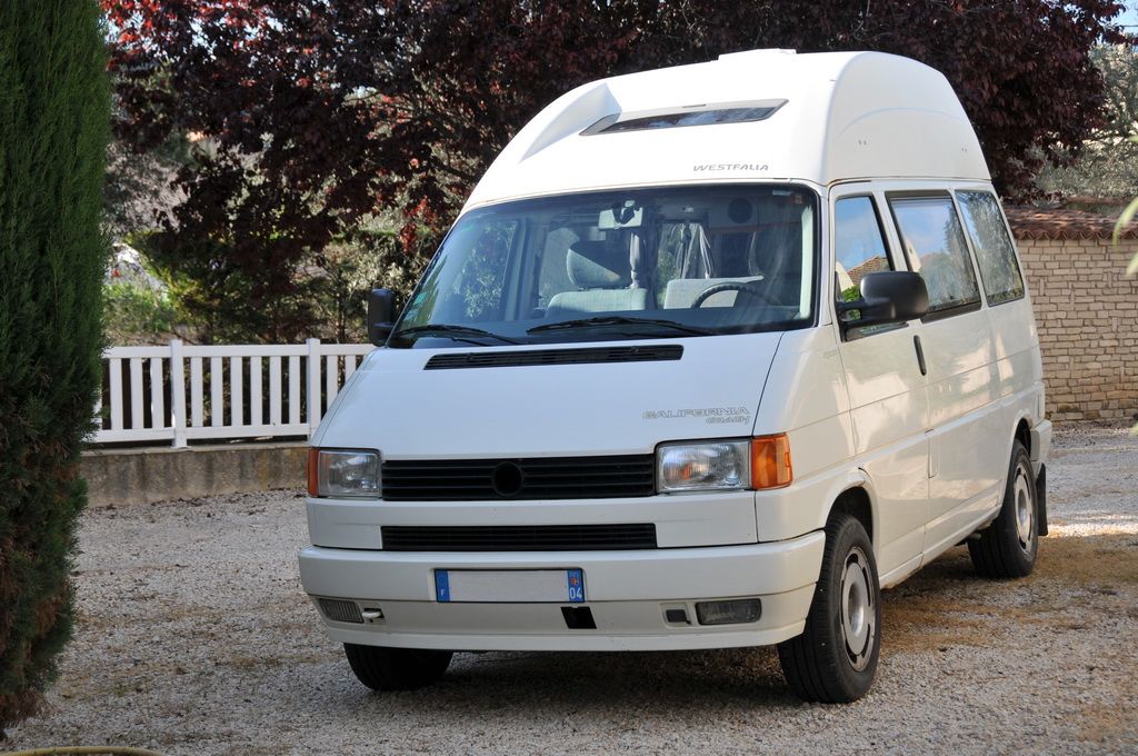 VW . T4 syncro (4 roues motrices ) . Intérieur : aménagement complet d'origine Wesphalia en très bon état . 4 places avec ceintures , VASP caravane homologuée . 155157 KM . Moteur 2,5 litres essence . Clim et chauffage à révisés si besoin ( car jamais utilisés par moi . car usage uniquement l'été ) .Un frigo , deux feux au gaz , un évier . Rideaux - placards en haut et en bas, et rangements intégrés. Banquette clic clac deux couchages adultes en bas uniquement Table amovible intérieur . .Sièges avant pivotant . Prise 220 pour le camping , et une en 12 volts . 1 batterie moteur , plus 2 grosses batteries supplémentaires avec recharge en roulant ou sur le 220v en fixe . Auto radio CD . Isolants pour les vitrages . Toit sur élevé en dur très pratique de se tenir debout à l'intérieur , sans avoir à déplier le toit . Fourni : marche pieds pliant ,et cales de niveau neuves . 3 jeux de clés , un porte vélo .à fixation rapide sur boule d'attelage . Réservoir d'eau avec pompe électrique pour l'évier . fenêtre côté cuisine ouvrante . Motricité 4X4 idéale sur chemins de terre et la neige si besoin , bonne tenue de route. Pneus pratiquement neufs . CT OK . Carnet d'entretien depuis l'origine et factures ( véhicule deuxième main . un seul propriétaire avant moi .) Très peu de KM (garantis ) ce moteur est fiable et puissant , véhicule ROBUSTE fait pour durer . ( Il ne fait pas son âge car toujours soigné ).