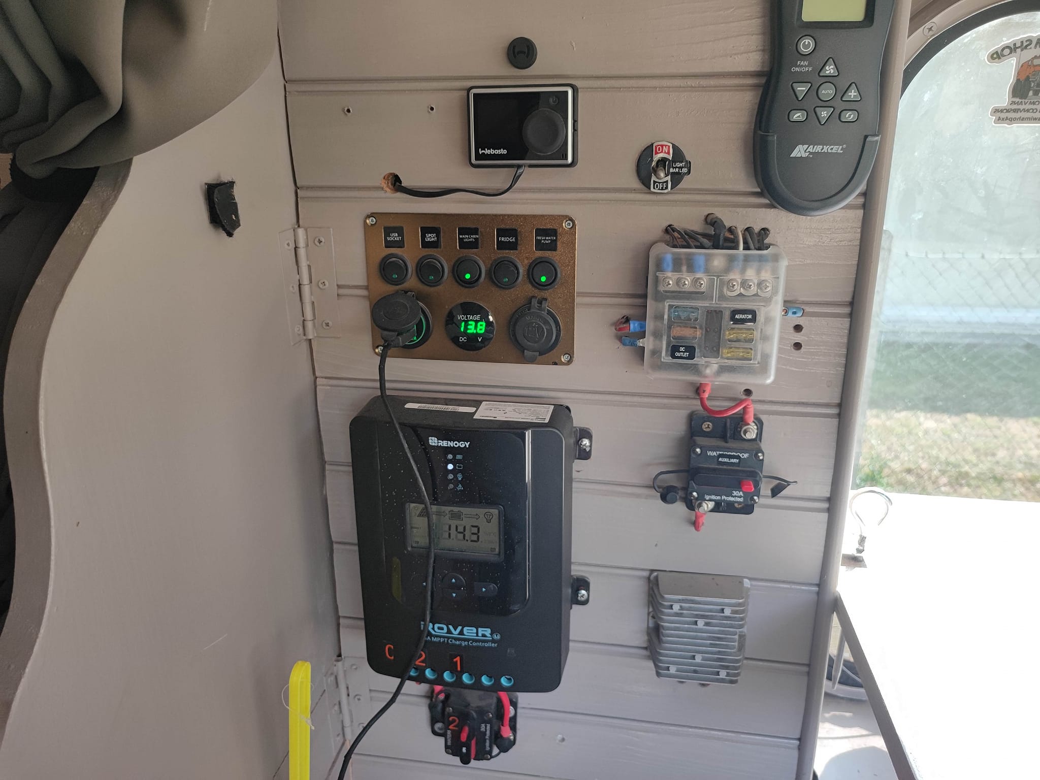 Électricité/autonomie: batterie lithium 400amp, 3x100w de PS de qualité, chargeur mppt Renogy , chargeur DcDc 30amp Victron, Alternateur 160 AMP,