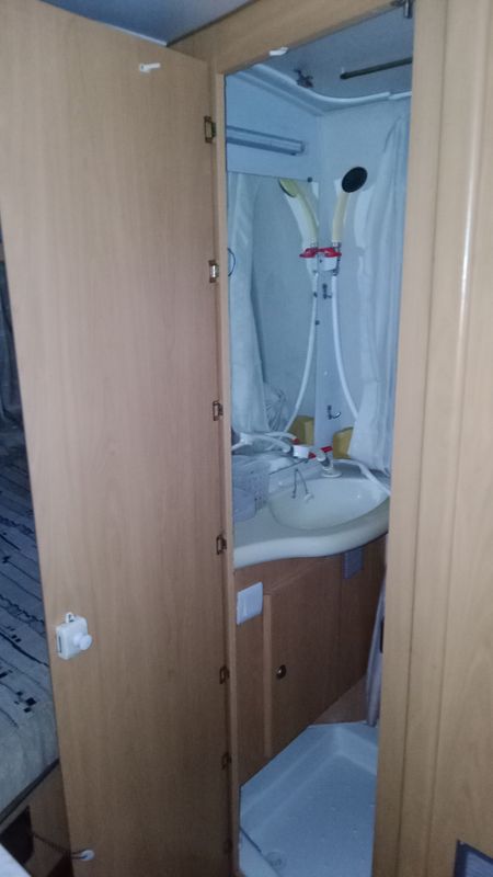 Salle de bain+WC indépendants. En bon état d’usure. Toutefois, le bac de douche mériterait une petite couche de gel coat en rénovation. Il ne fuit pas mais son revêtement est craquelé. Par contre, le WC est neuf.
