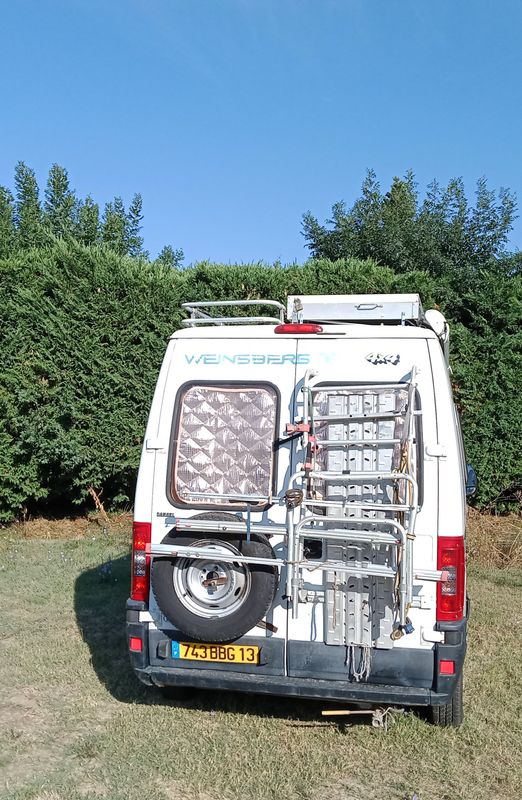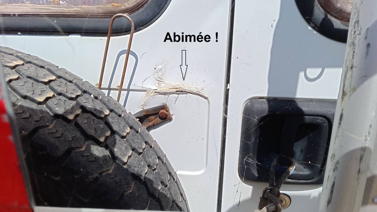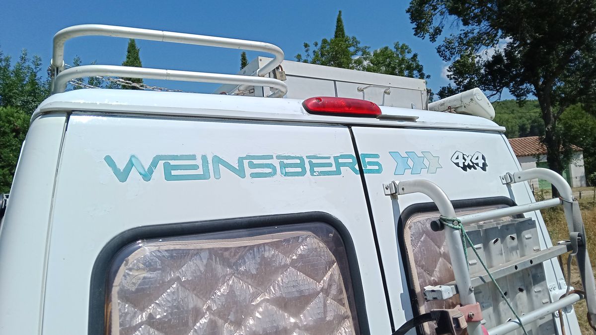 La carrosserie est très propre. Toute la face avant et le côté droit ont reçu une peinture complète. Le côté gauche a seulement été rénové. Les portes arrières sont moins présentables à cause, notamment du porte vélo et du poids de la roue de secours. Elles font le boulot mais pourraient faire l’objet d’une rénovation pour un look parfait.