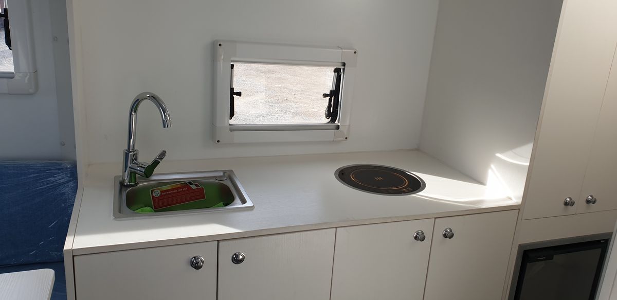 Cellule amovible équipée de : climatisation ; 4 couchages (lit capucine 160 + lit cuisine 140) ; frigo , plaque vitro céramique ; évier ; penderie ; coffres de rangement ; sanitaire intérieur (douche + WC k7) ; cuisine extérieure gaz ; douche extérieure ; 2 panneaux solaire 360W ; rehaussement électrique à mémoire du toit ; 4 pieds électrique indépendant ; store banne ; batterie 24w ; moustiquaires sur tous les ouvrants ; 3 lanterneaux sur le toit . Possibilité de vendre la cellule seule.
