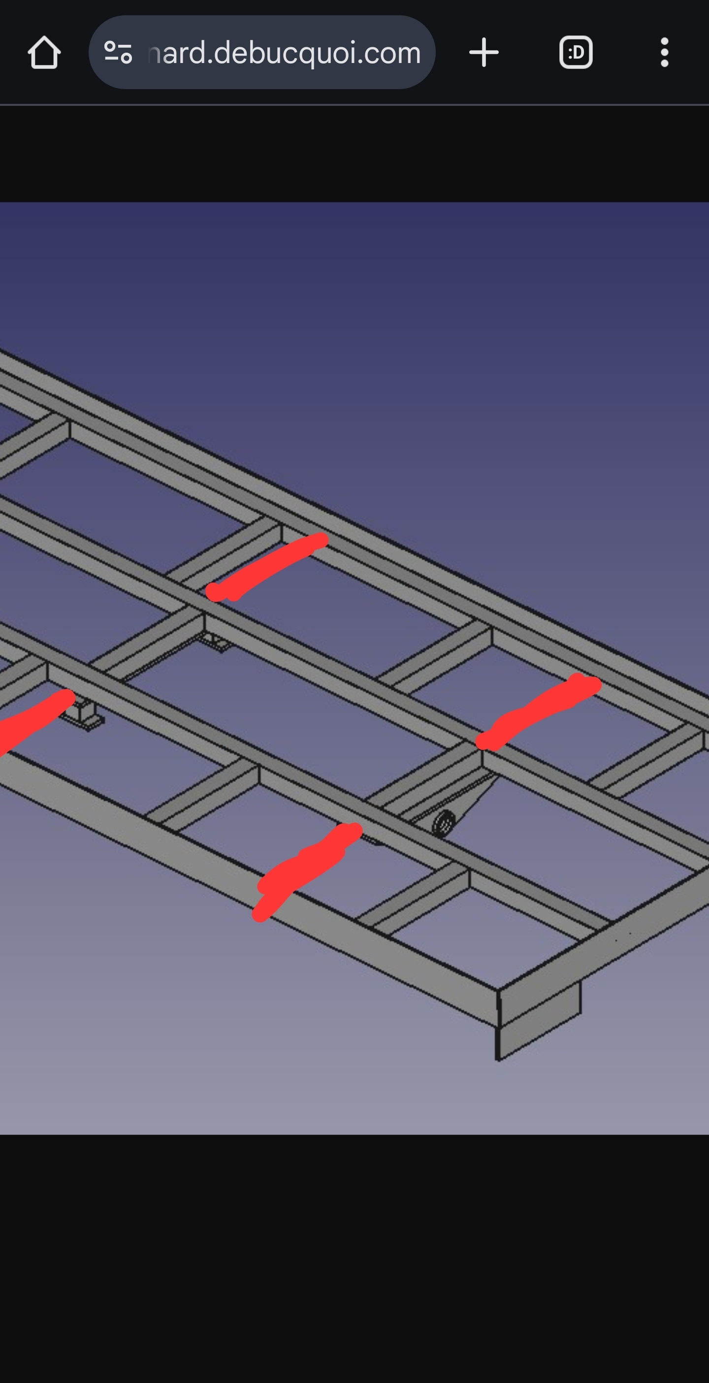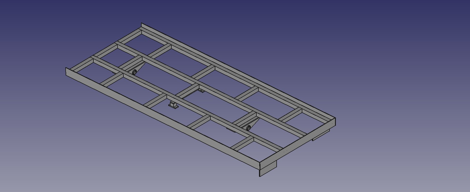 Moi j'aurais mis des traverses sur toute la largeur au niveau des points d'appuis, ça crée une faiblesse sinon.