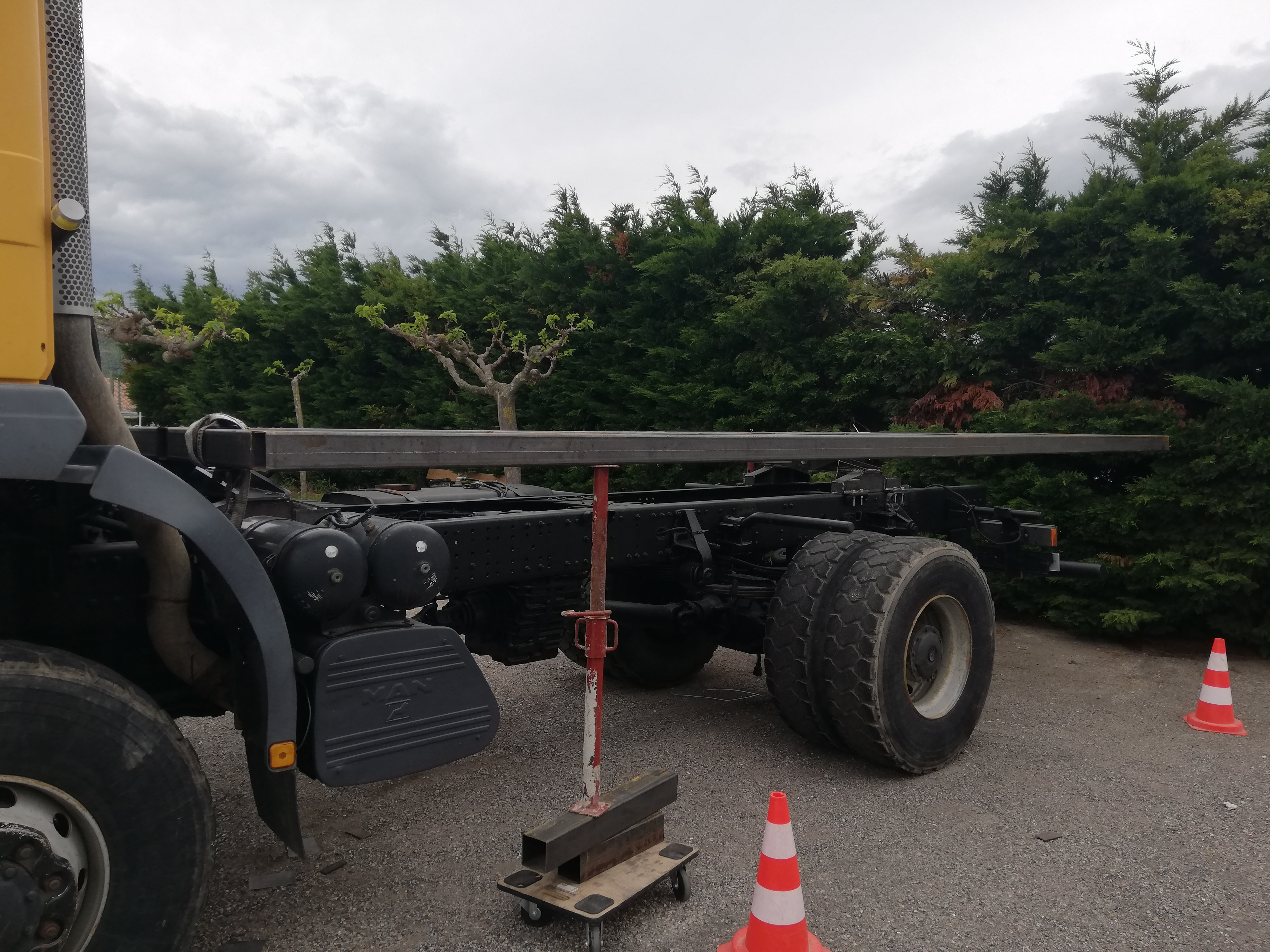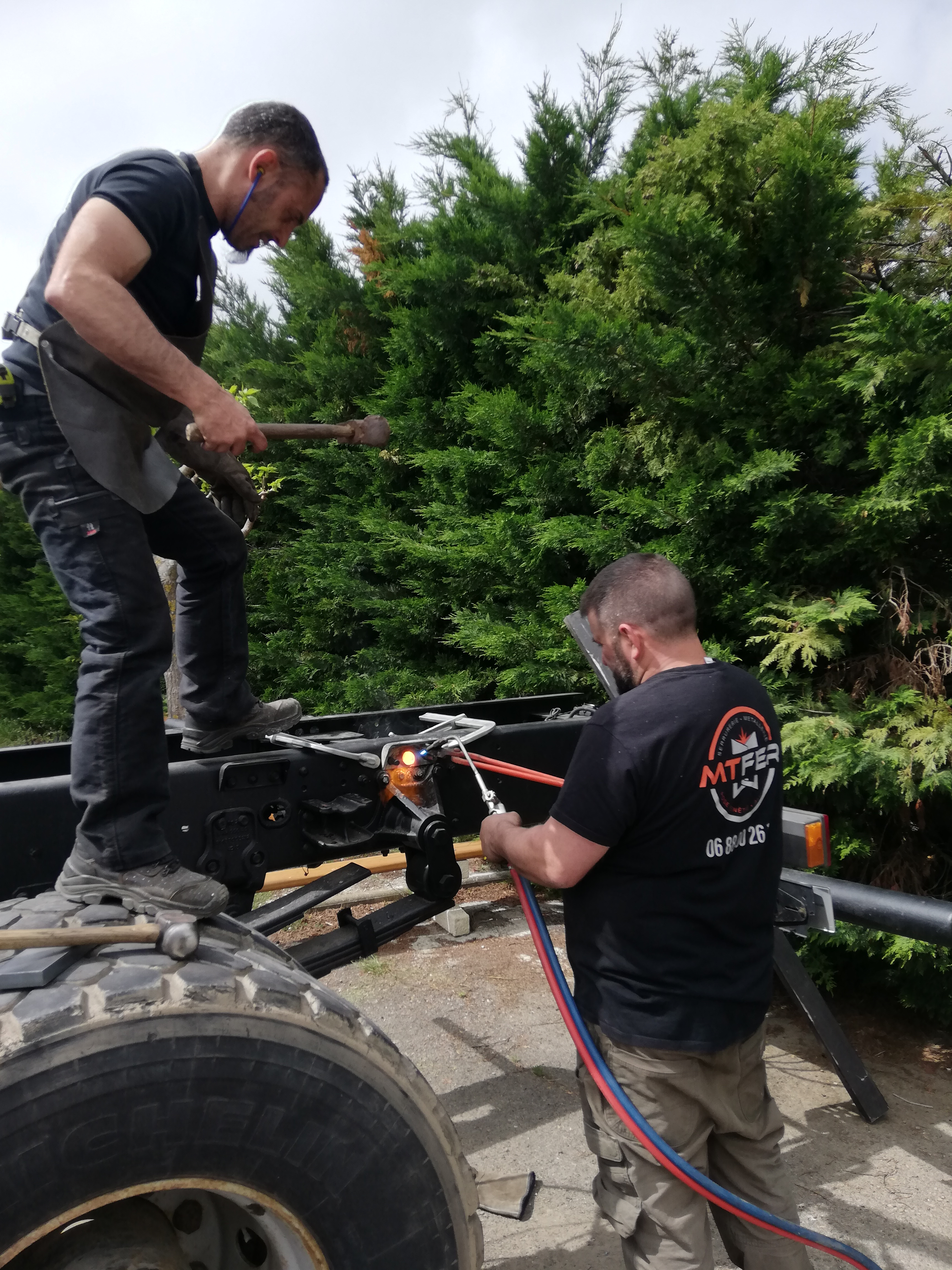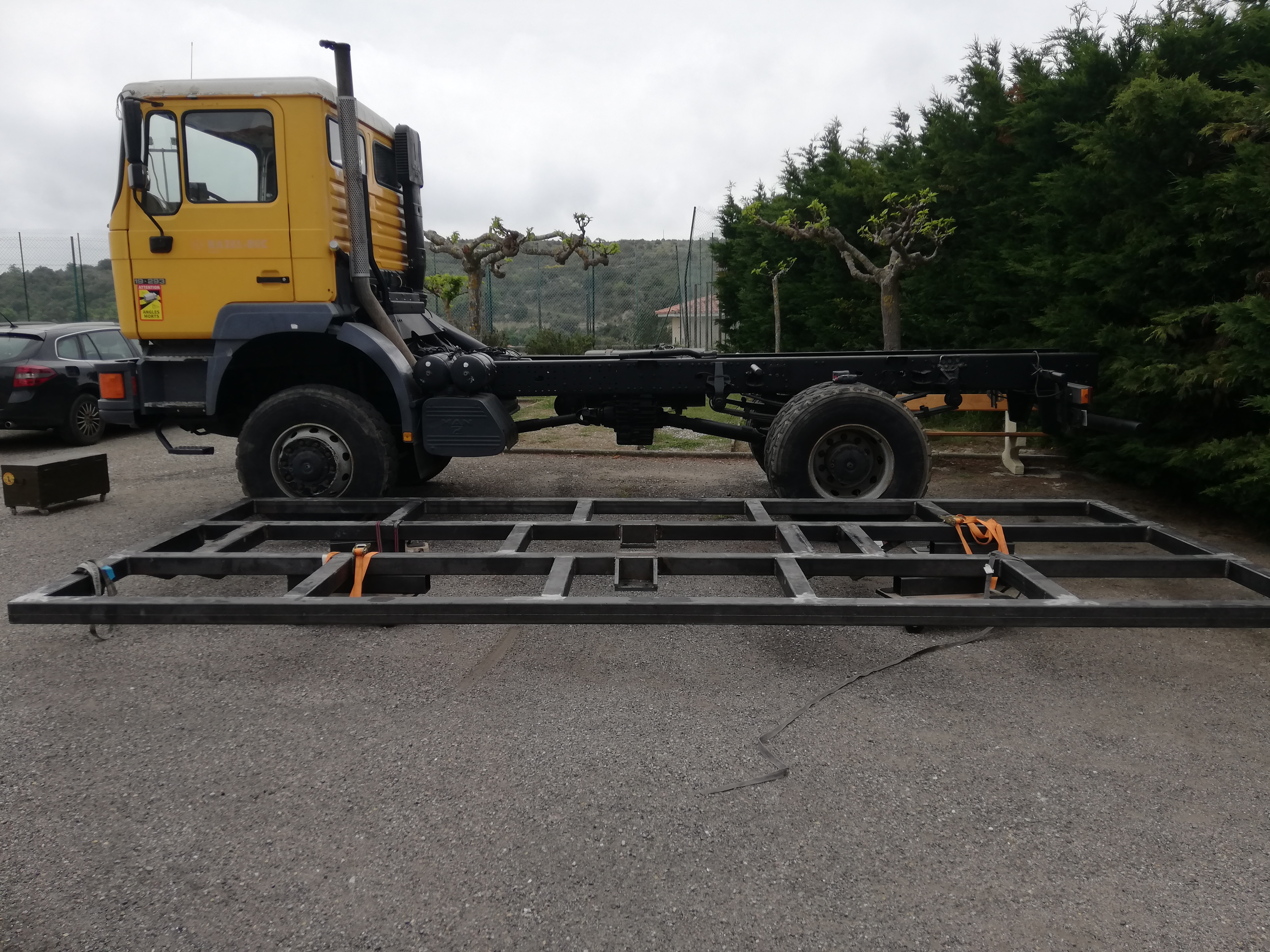 La semaine dernière à été bien remplis, nous avons pas mal bossé avec le ferronnier et ses collègues pour que tout soit prêt pour ce lundi, car, c'était le grand jour, le moment de vérité, l'installation du faux-châssis sur le camion !!!