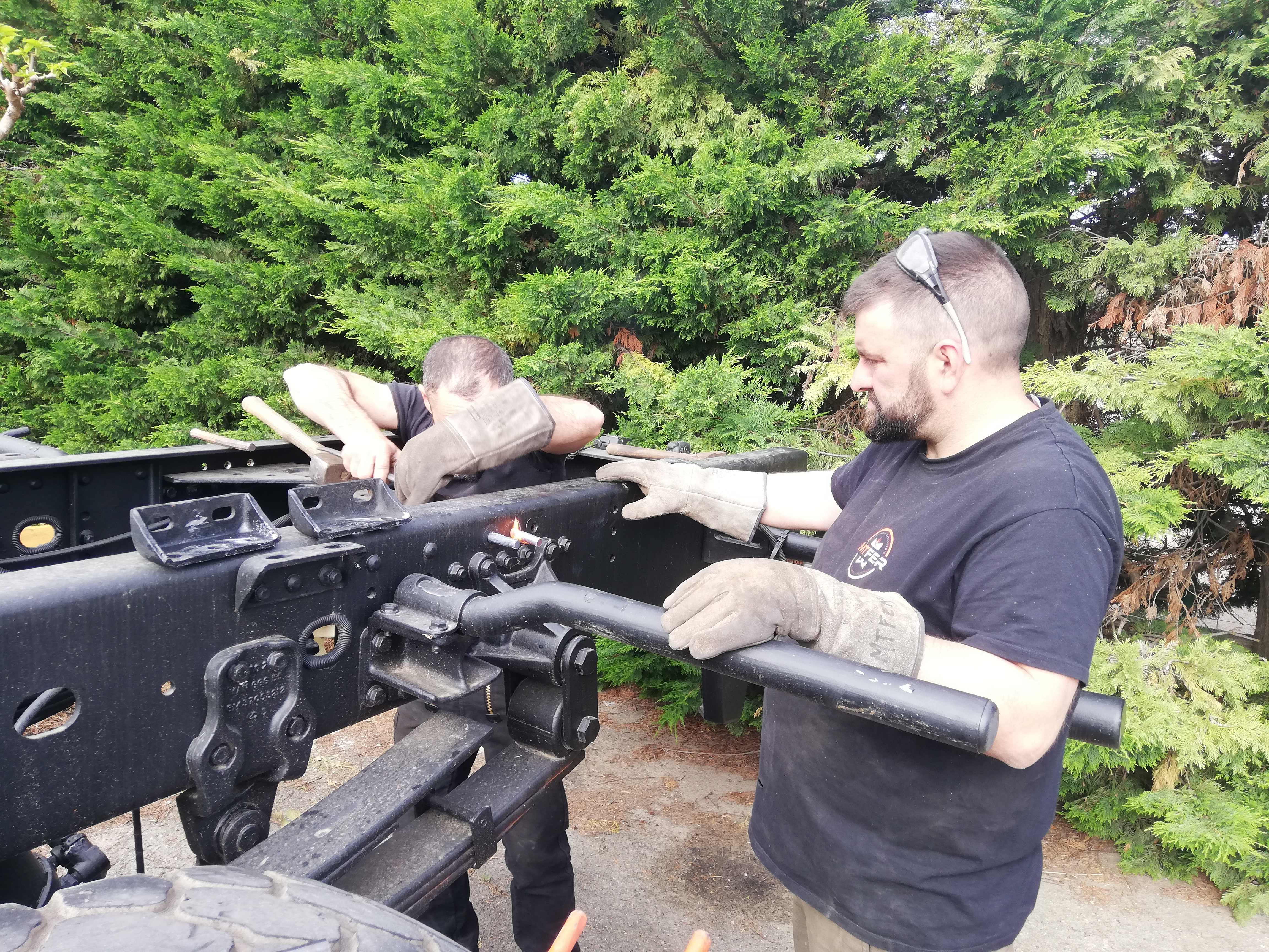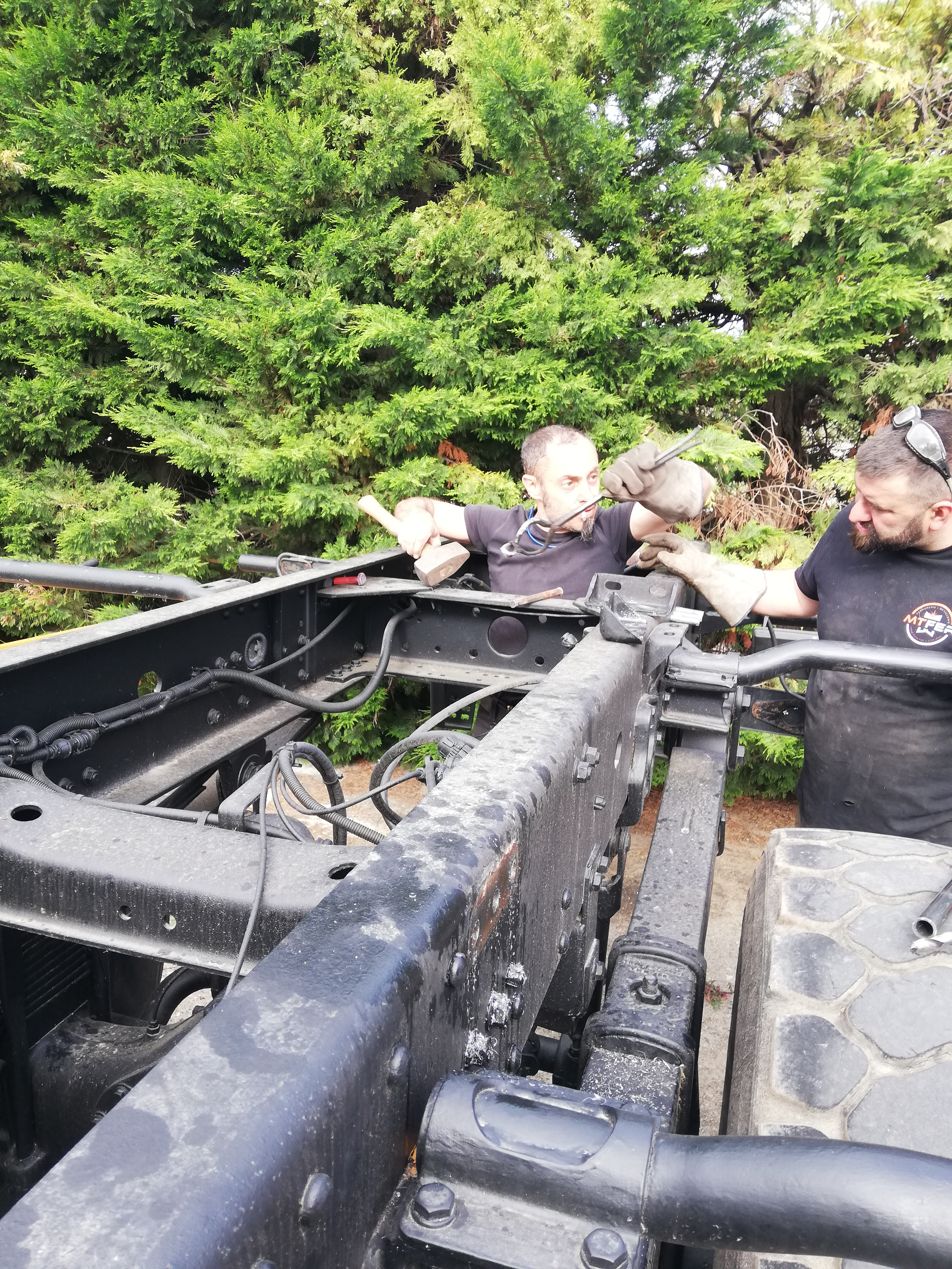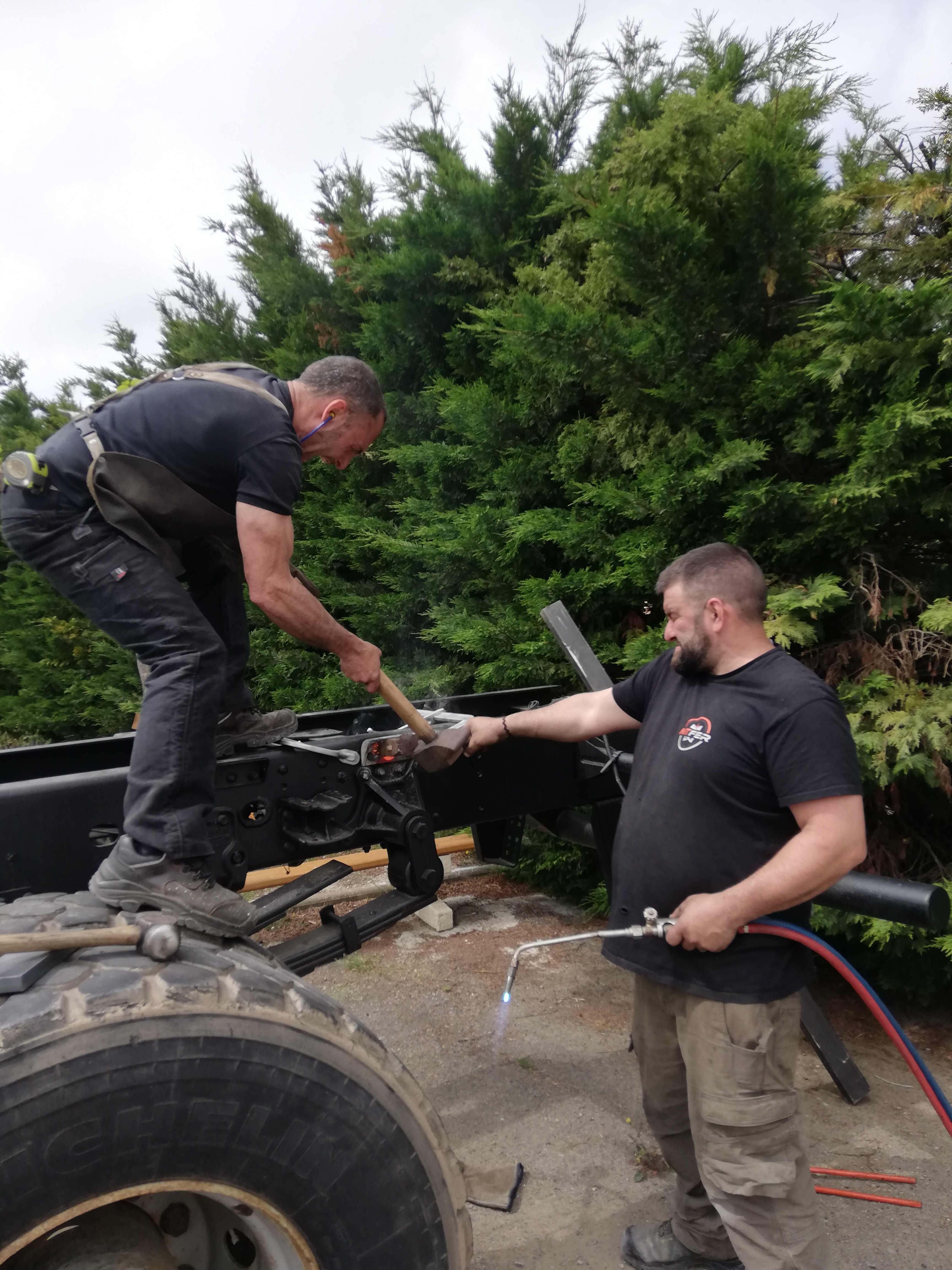 La semaine dernière à été bien remplis, nous avons pas mal bossé avec le ferronnier et ses collègues pour que tout soit prêt pour ce lundi, car, c'était le grand jour, le moment de vérité, l'installation du faux-châssis sur le camion !!!