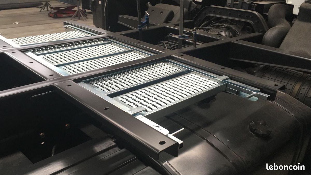 Construite sur mesures par carrossier industriel, parois sandwich PU pressées sous vide avec inserts alu et acier. Encadrements cadres inox, serrure Pomier, 4 fenêtres expédition Widebirds BV. 3 lanterneaux marine Lewmar. Passage cabine. 2 évents inox sur le toit. Toutes les ouvertures sont équipées d’occultants et moustiquaires.