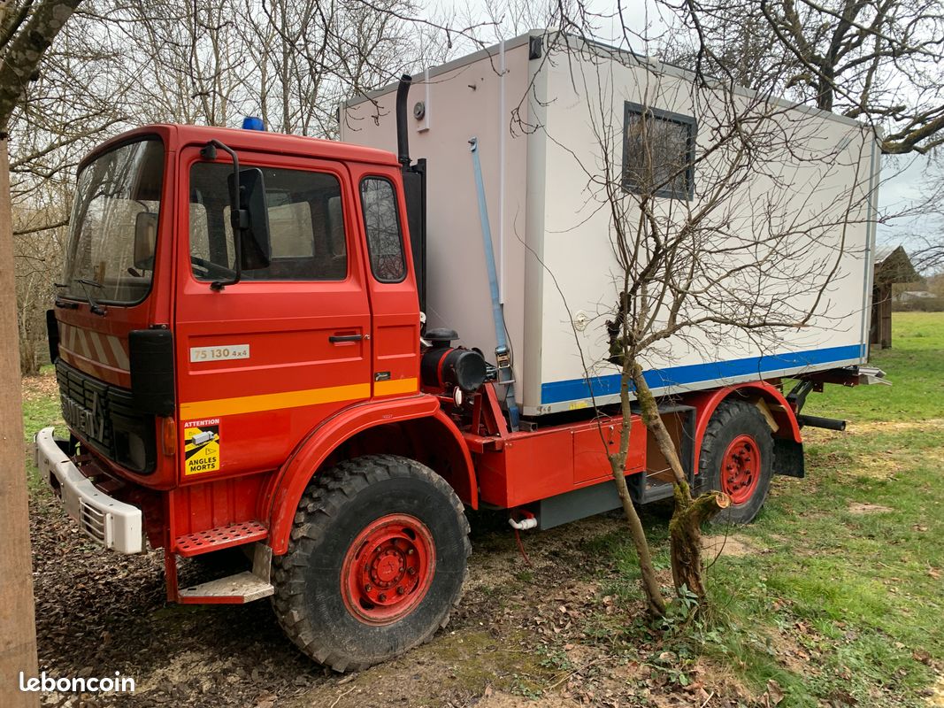 Saviem 75/130 15867 km garantis (carnet entretien des pompiers). 4X4 débrayable avec blocage de ponts.