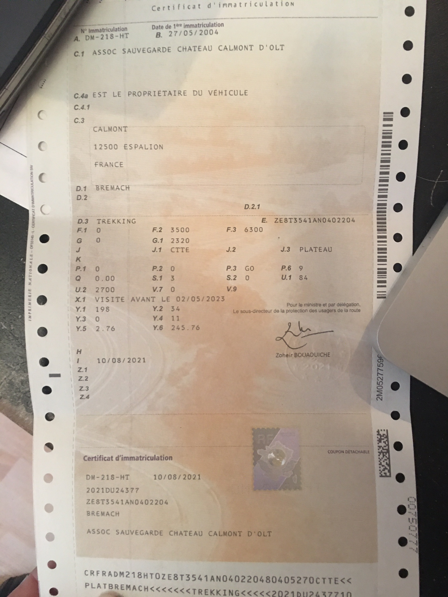 Bonsoir, 2004 est la date de 1ere immatriculation je ne suis pas encore familier avec le site mais j'ai joint la CG vous la lirez mieux que moi pour identifier le type de Bremach.
