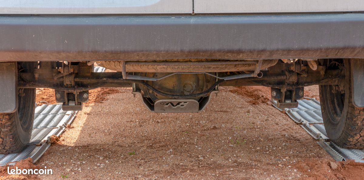 Véhicule prêt pour vous amener au bout du monde avec + de 20 000 € d'options tous terrains (jantes et pneus spéciaux All Terrains Goodrich 16’’ 245/75, bavettes anti-éclaboussure aux quatre roues, treuil électrique de 4.5 t, schnorkel, 6 protections alu sous châssis, suspensions arrières renforcées par un jeu supplémentaire de lames à ressort, amortisseurs spéciaux Scorpio à bouteilles déportées, réservoir GO 100 L avec deuxième filtre avec séparateur d'eau Eliminator (KL5), réservoir eau 100 L, chaines neige industrielles, plaques désensablage aluminium, galerie de toit avec protections anti-effraction, films sur vitres, échelle de toit, porte-vélos, etc, etc.).