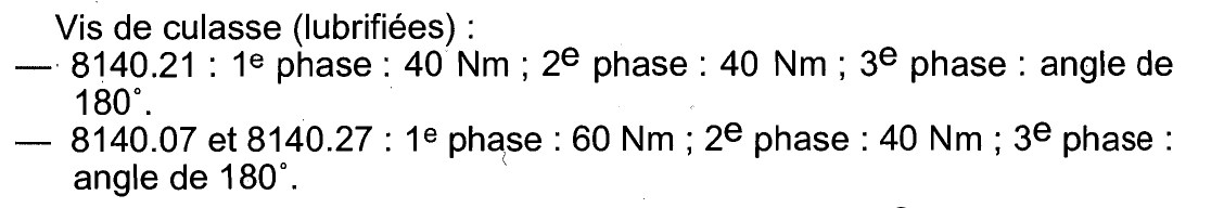 Pour le serrage des vis de culasse, cela dépend du type moteur: Pour les moteurs 8140.07 ou 27, il y a une erreur pour la deuxième phase, c'est 60Nm