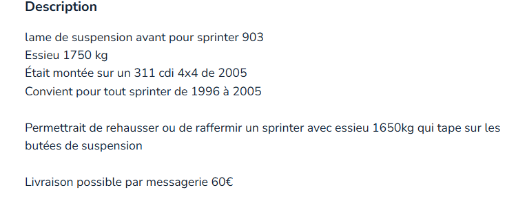 Laisse tomber, c'est la mienne, elle est fatiguée !!! mais elle irait sûrement à un sprinter non 4x4 (plus léger quoi)