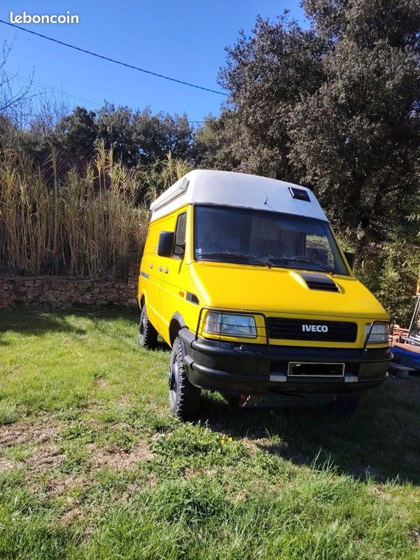 A vendre. Très rare, fourgon Iveco 4x4 de collection. 2.8 turbo boîte courte et bloquage de pont Expertise 35000€ aménagement intérieur. complet, eau chaude frigo douche. Et système de production de courant .