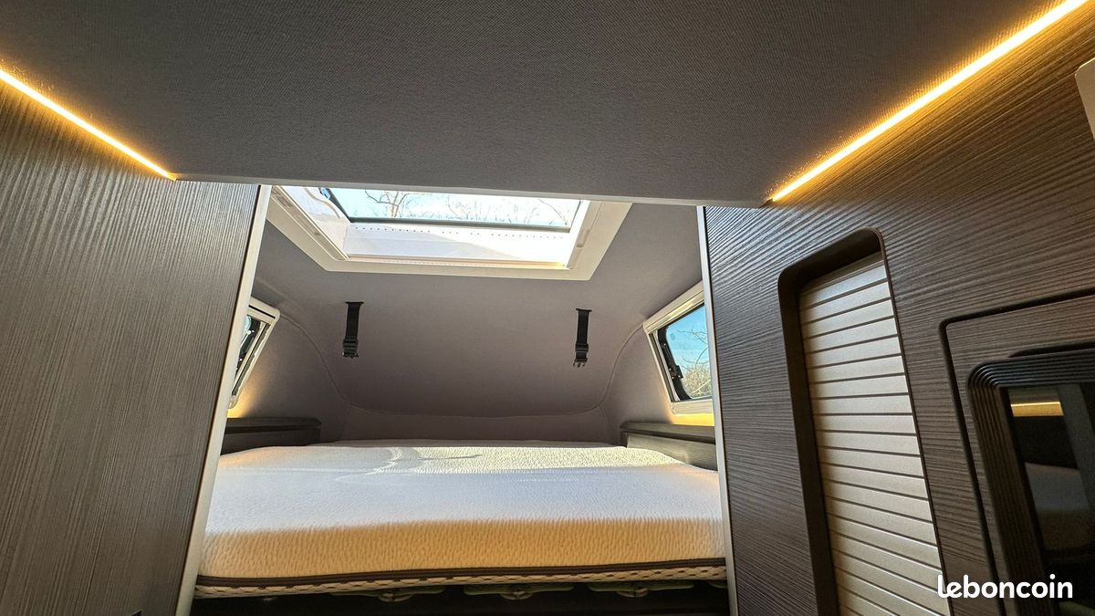 (moustiquaire et rideaux, sauf sdb) - Occultant cabine isolant - Lumière extérieure sur porte latérale - Interface Domotique ARVIKON connection CIBus - Chauffage et Chauffe TRUMA COMBI 4D avec kit altitude - Douchette EC / EF extérieure - Batterie Lithium 300 Ah - Booster de charge 80A - Convertisseur 1000W Dometic - Prise de charge 230v avec chargeur 25A