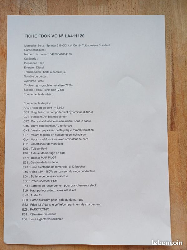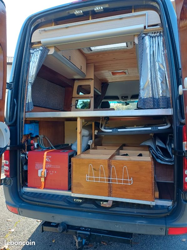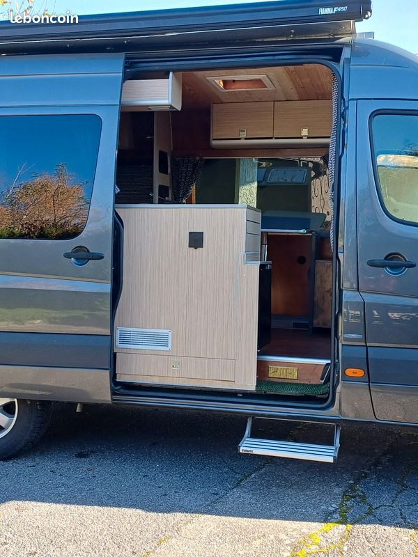 Suivi exclusif Mercedes- 4 pneus Michelin cross climat neuf – compresseur clim neuf – chaudière moteur et eau chaude – chauffage stationnaire d’origine programmable – plaque de cuisson webasto x100 servi 1 fois – station elec EZA – combo E 1500W 100AH – Panneau solaire L.G 370 W. Ballon eau chaud primaire et elect 800W- WC Thetford C223 S électrique avec SOG – réservoir eau propre 100 litres - Eau usé portable 40 litres – Douche chaude extérieur – lit 2.00 x 1.65 avec liseuses – 2 lanterneaux – 1 70x50 arrière avec rideaux et lumière LED – 1 40x40 avec ventilation réversible avant – Meubles evo-deisgn avec éclairage led - Frigo compression – evier eau chaude eau froide – grande soute avec rack coulissant – rideaux thermiques sur tout le véhicule – rideau ext soplair pour cabine – intérieur bois vernie céramique – isolation armaflex + mousse – triple plancher armaflex – plancher nid d’abeille mercedes et cp de 10 – rampe led toit – table West field + 2 chaises soplair – câble alimentation 220 V 25ml – détecteur gaz – sabot moteur – store banne extérieur FIAMMA F45 5 -extincteur - fn