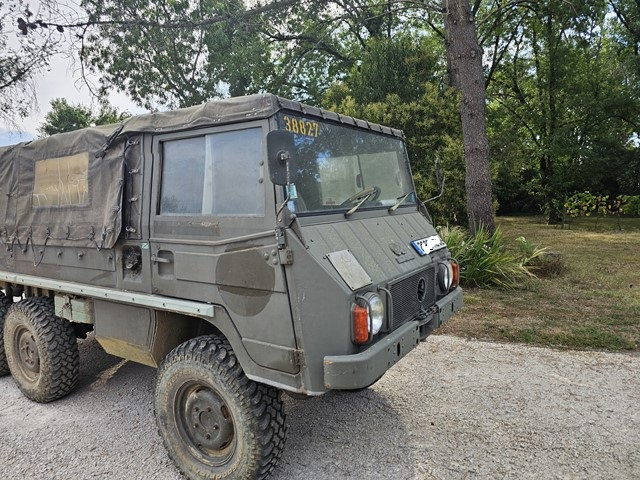 c'est un véhicule atypique construit à partir des années 1970env. par les autrichiens et principalement vendu à l'armé Suisse sous licence Daimler