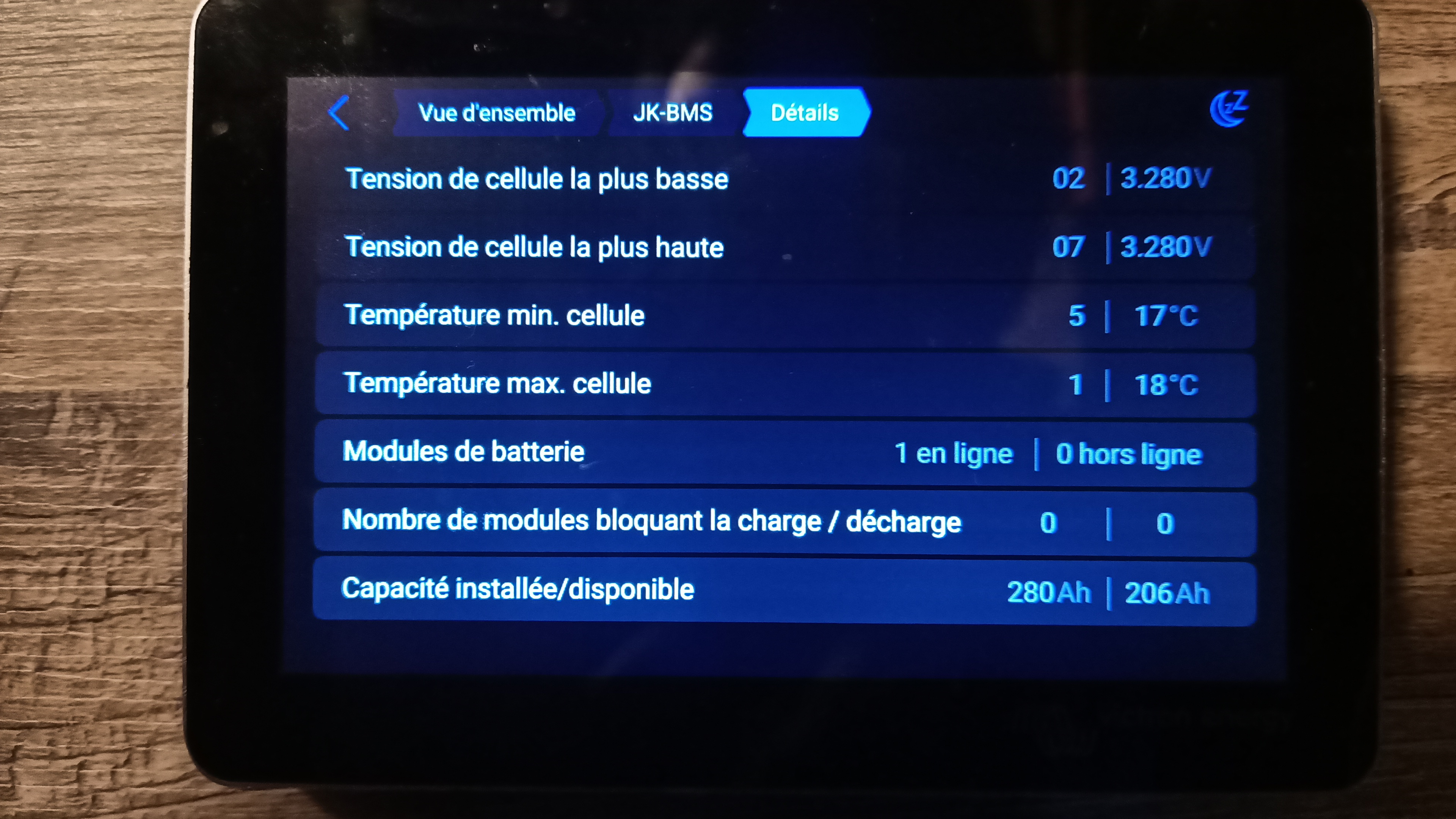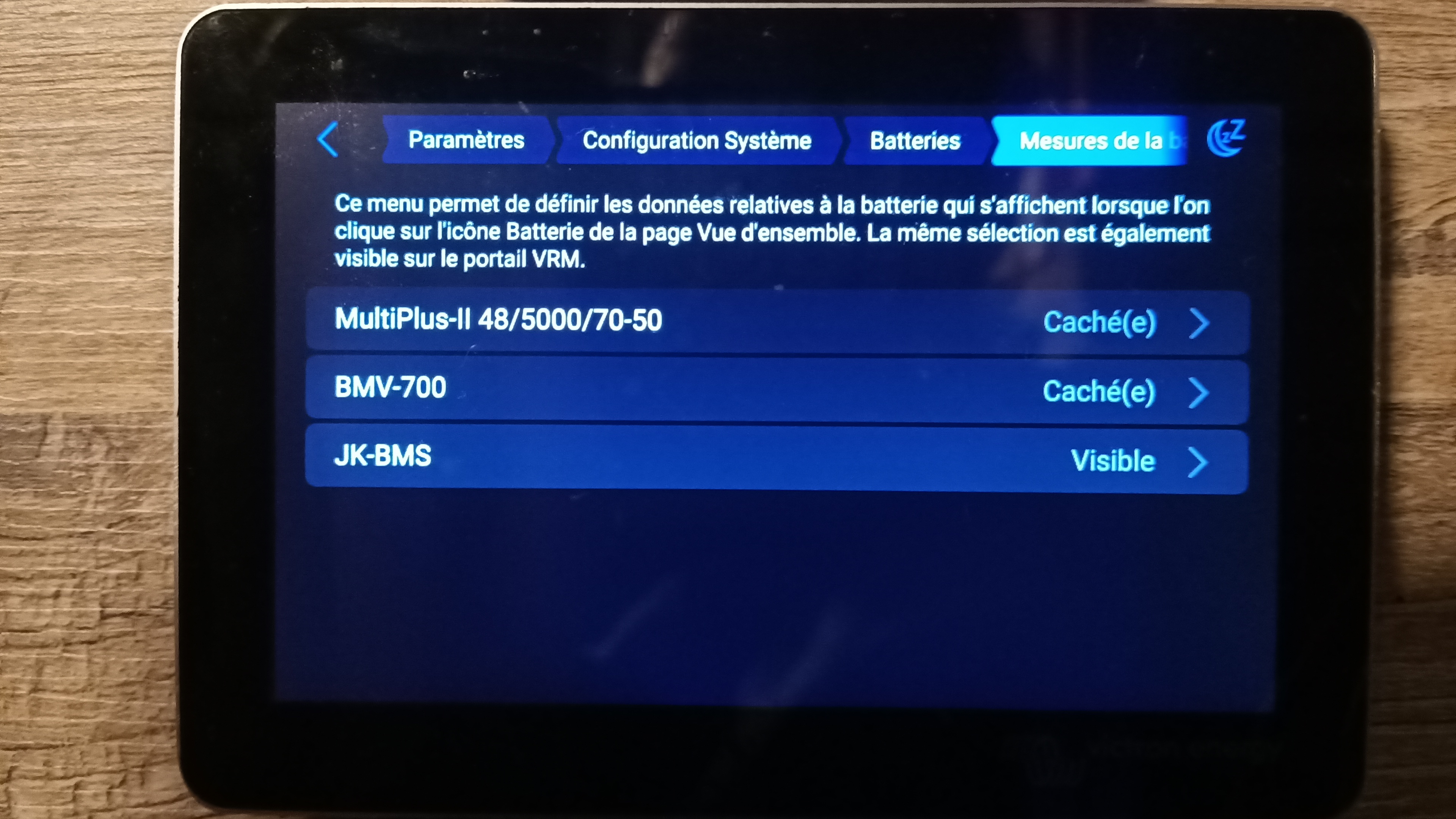Pour les voyageurs qui ont un bms Jk et une installation Victron avec un Cerbo gx dans leurs vehicules, voici une méthode simple pour avoir la température et le SOC du BMS sur votre écran Cerbo.