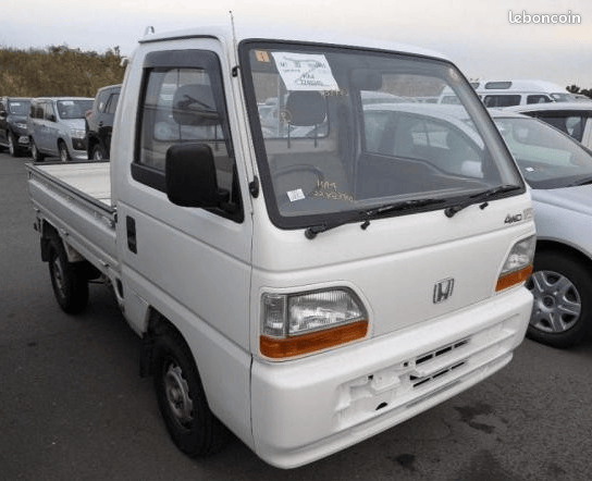 Mini camion pickup Honda Acty HA4, moteur essence 660cc, boite de vitesse manuelle à 5 rapports, 4 roues motrices (4x4 ; 4wd), 3 cv fiscaux, 2 places, carte grise collection, import Japon.