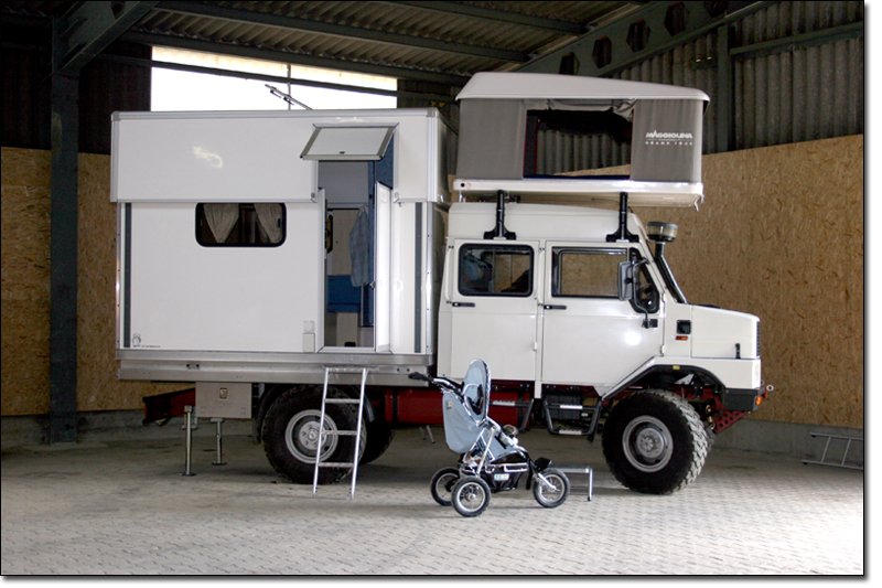En cherchant sur le forum, j'ai retrouvé un vieux lien vers un allemand qui avait découpé le toit, et fait lui-même une réhausse en tôle, et avait tout aménagé à l'intérieur...