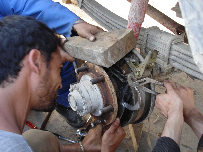 Heureusement on avait pris avec le kit tout neuf de Stéphanie de Truck Ingéniering (j'arrive jamais à l'écrire). On se balade toujours avec le kit en prévision de quand les freins vont péter.... comme ça on use jusqu'au bout.... nah je plaisante en fait on n'avait jamais trouvé le temps de s'y mettre !
