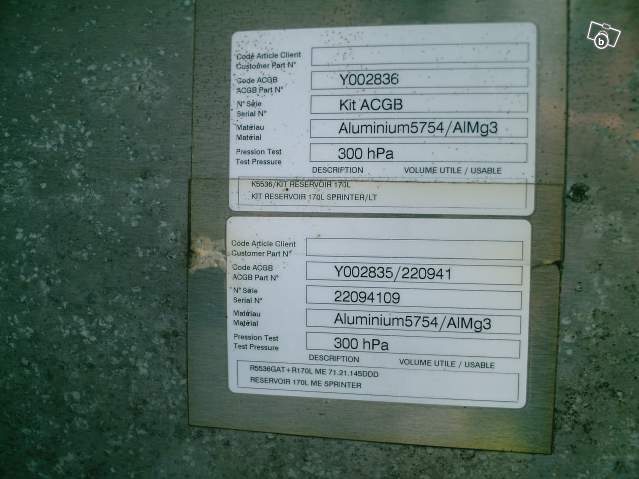 Apluchevds grand réservoir en alu, 170 litres pour fourgon mercédès SPRINTER, avant-dernière génération! modéle-series 200 et 311, 313, 315 CDI + series 400