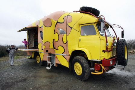 puis comme ça condamnait l'accès a l'arrière je me disais et pourquoi pas mettre les portes articulées de la même façon..mais de n'en ouvrir que le bas pour l'accès aux rangements...
