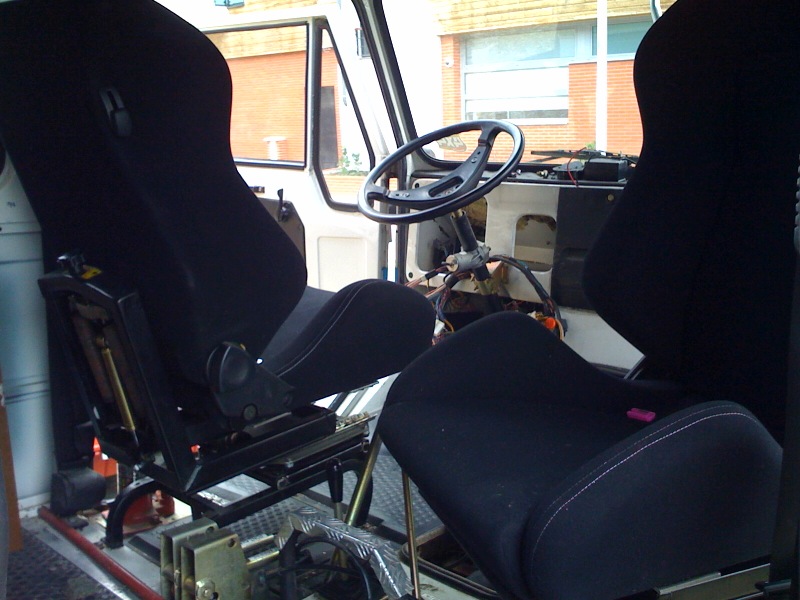 Une question : j'avais essayé de mettre des sièges tournant (outre le pb avec la foret de leviers qui empechaient une rotation aisée du siège), je trouvais la position de conduite bcp trop haute (même avec des baquets à l'assise peu épaisse).