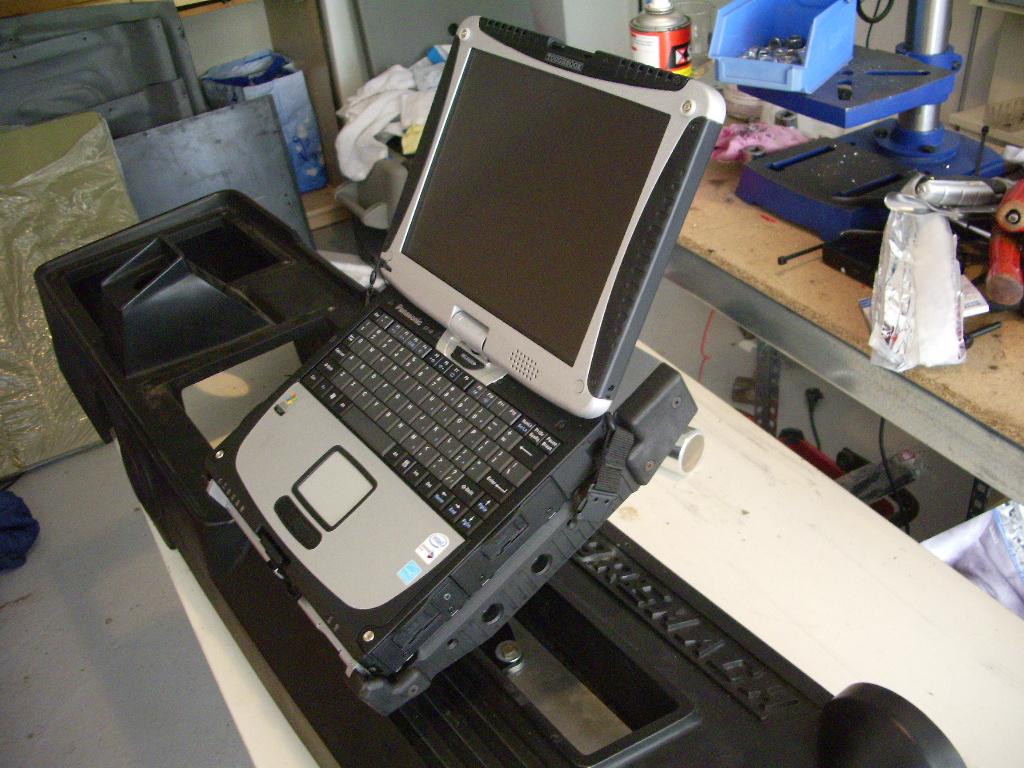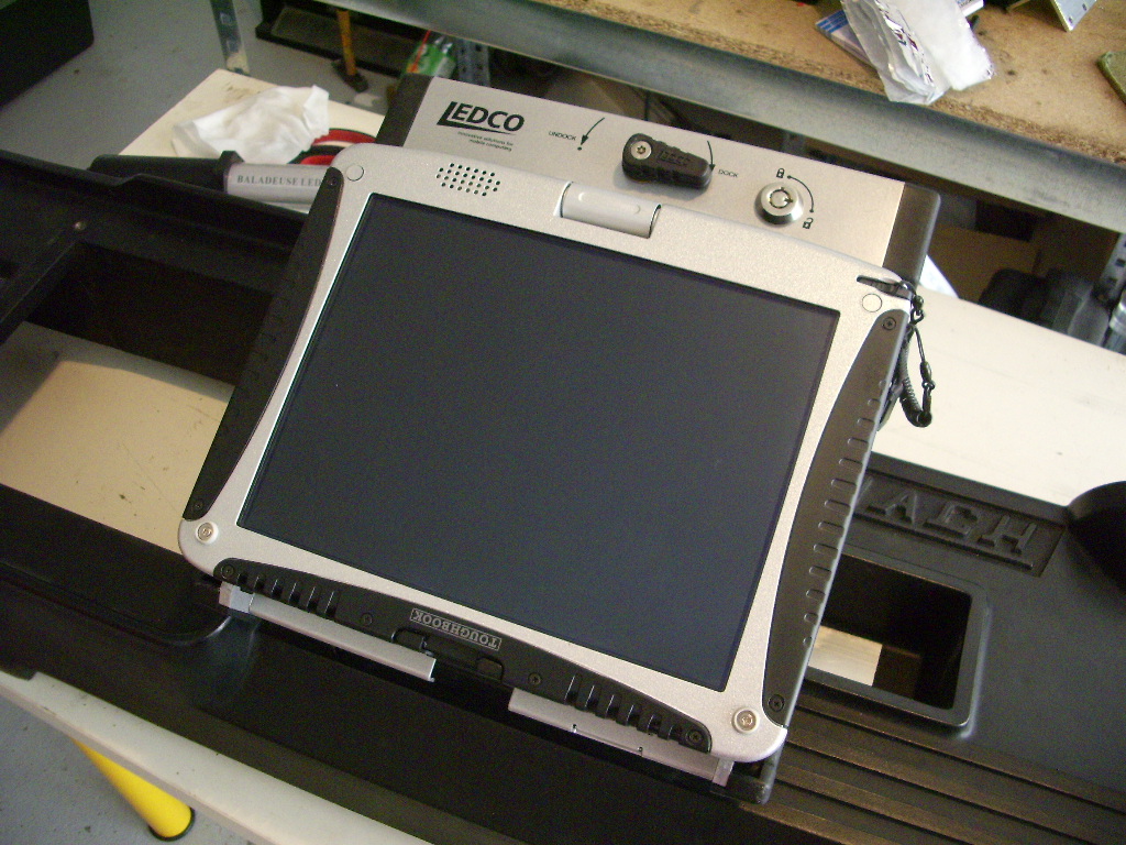 Comme on a pas de temps à perdre, nous avons démonté le tableau de bord du Bremach pour y fixer l'ordinateur et des prises allume-cigare ainsi que le passage des câbles. Mais l'histoire n'est pas terminée donc donc donc a bientôt .
