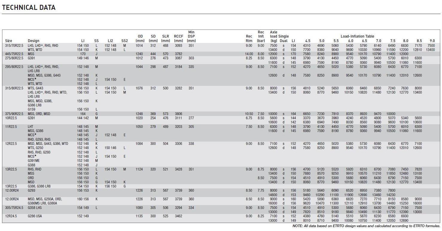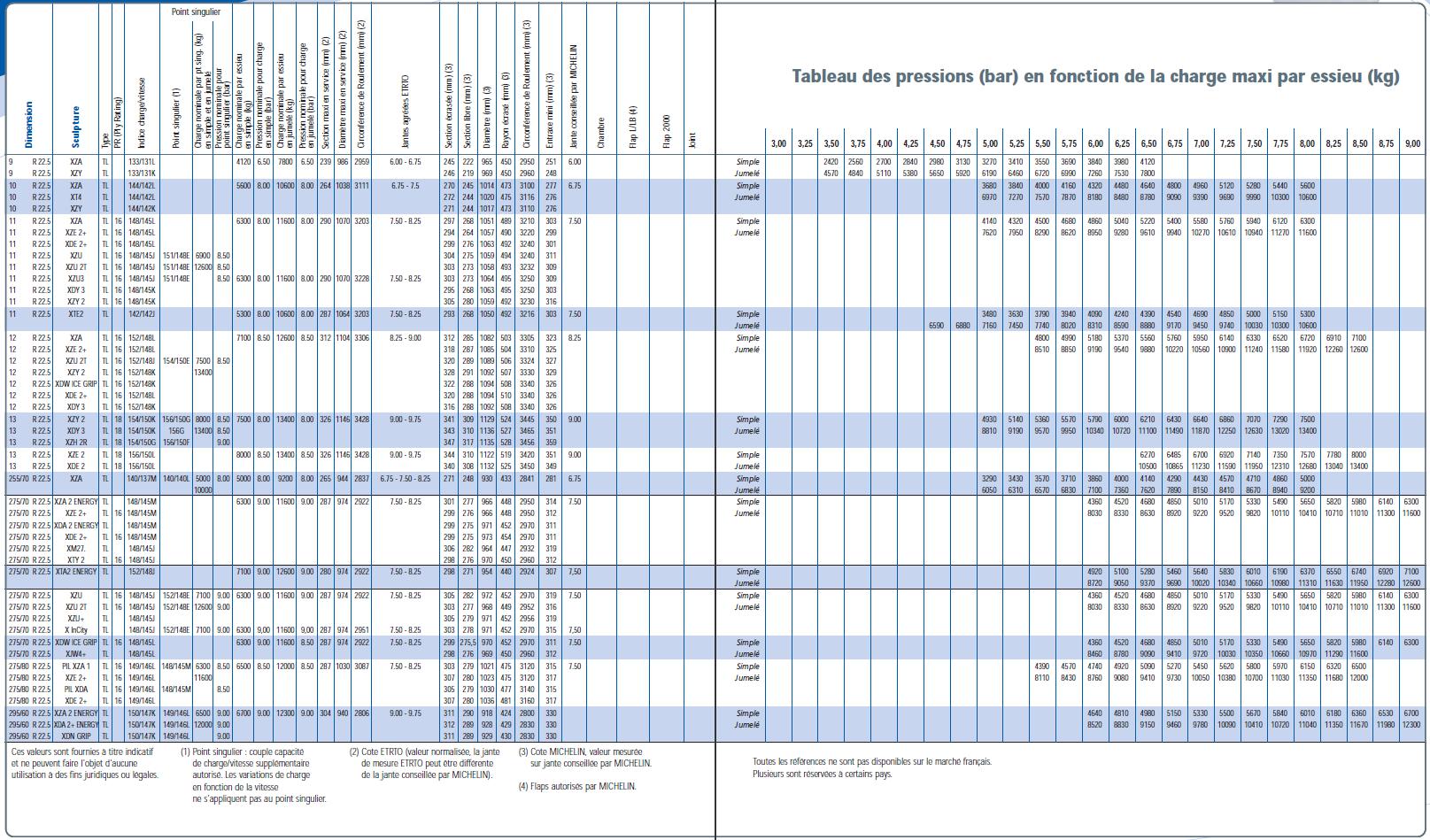 J'ai ca qui vient du site michelin poids lourd,
