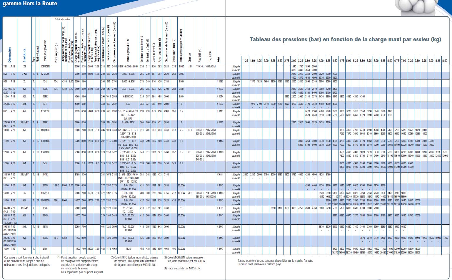 Tiens, et pour ceux que ca interesse :mrgreen: la pression des pneux en fonction de la charge et du terrain.