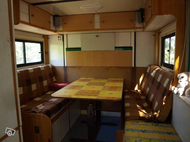 Ma maison comprend tout ce dont on a besoin pour voyager au long court: une table et des banquettes se transformant en un lit confortable, un coin cuisine avec ses 2 gaz et son évier équipé d'eau courante, un coin WC, un chauffage et plein de coin de rangement.