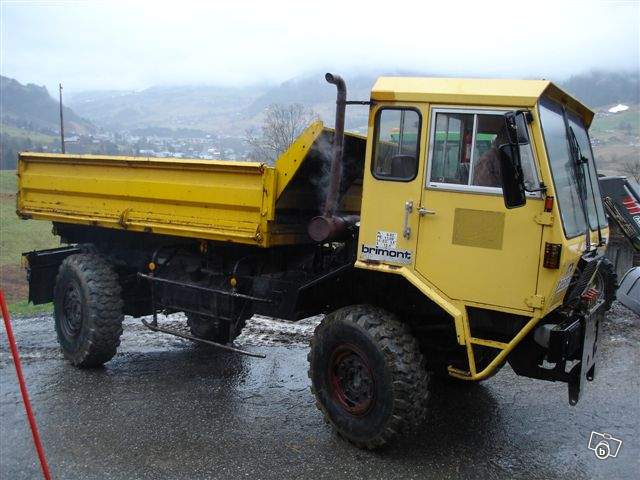 Brimont ETRS 1406 annéé 1982 4 roues directrice et position crabe,tribenne vitesse rampantes hyrdaulique équipé d'une plaque avant pour déneigement sortie hydraulique av et ar ainsi que distributeur assez bon état prix a débattre