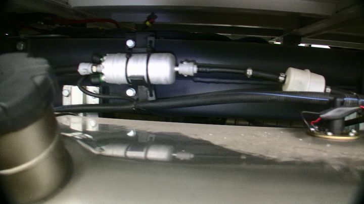 sur la photo on voit en partie supérieure le système "cyclone" montage de la pompe de transfert du réservoir supplémentaire protégée par son filtre
