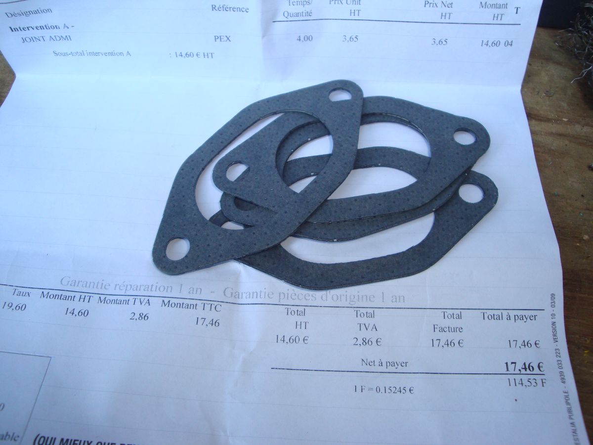 On se remotive, et se prépare à tenter de dévisser les écrous du collecteur d'échappement, il y a les 8 sur le bloc moteur et il faut aussi dévisser les 4 qui relient le collecteur au turbo. Une fois dévissé, le collecteur d'échappement ne peut pas s'enlever complètement mais il bouge suffisamment pour laisser sortir celui d'admission : B120 en haut et B90/110 en bas : Changer les joints : Nettoyer les plans de joints sur le bloc et sur le nouveau collecteur, positionner les nouveaux joints et présenter le collecteur : Remettre les écrous sans oublier les rondelles et serrer au couple préconisé (voir tableau en fin de post) Refixer le collecteur d'échappement au bloc moteur et au turbo : Rebrancher la durit de correction d'injection : Retirer la bague du turbo pour un contrôle de l'état des joints toriques et un petit nettoyage : Positionner la tubulure turbo>intercooler et la tôle de protection thermique : Monter les boulons au frein filet et serrer au couple préconisé : Pour la tubulure intercooler>collecteur je me suis laissé embarquer par mes souvenirs de bidouillage de scooter
