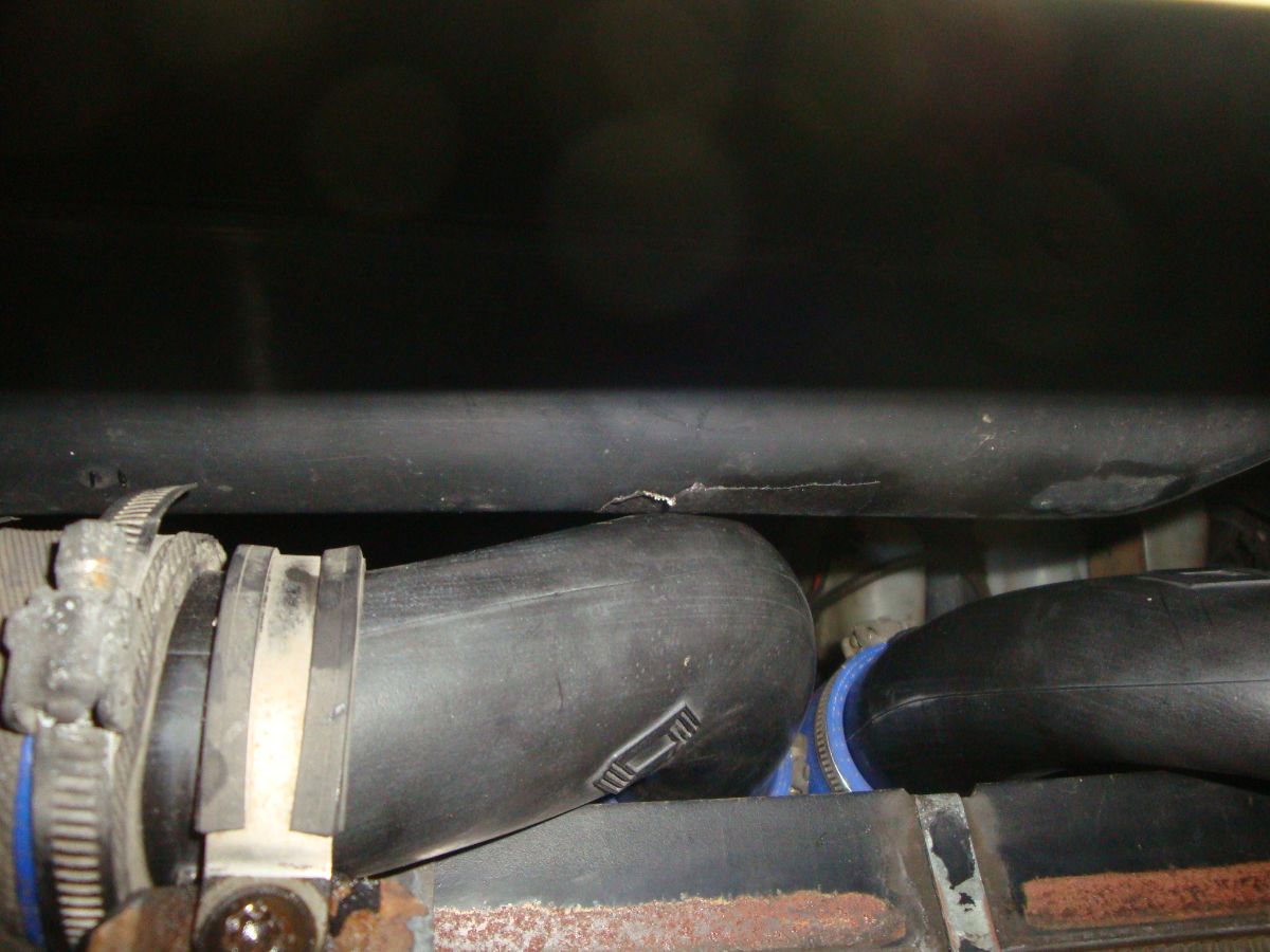 - La conduite de ventilation ne touche plus les tubulures mais frotte encore à peine contre le coude bleu de gauche.