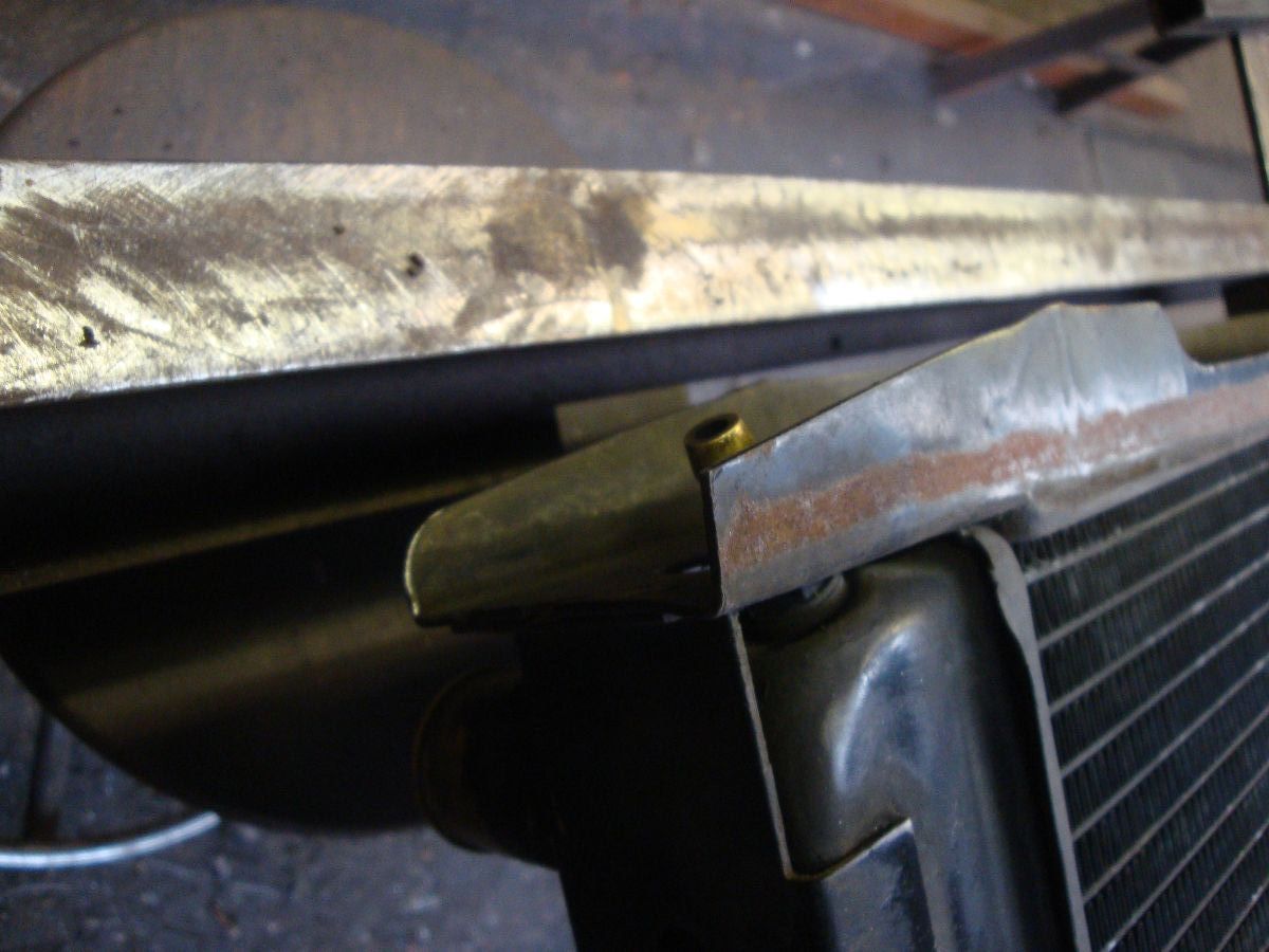 1/ Soudure des pattes de fixation : Le cadre du radiateur est fait de "U" de 1mm d'épaisseur (contrairement à la structure interne qui est très fine) donc ça se soude très bien.