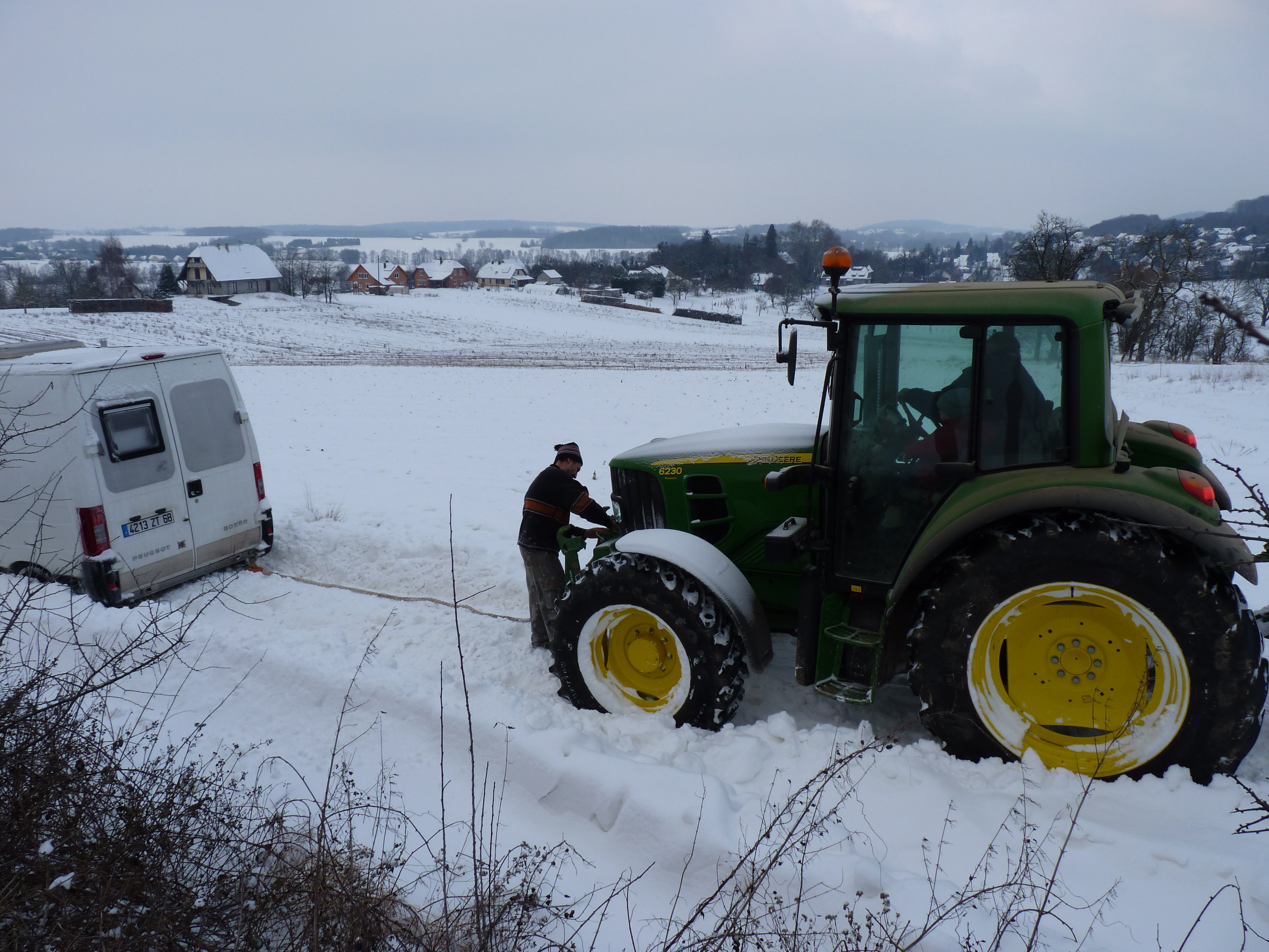 Même le tracteur est venu par derrière car un peu plus loin il y avait plus d'un mètre de neige et il ne serait pas passé.
