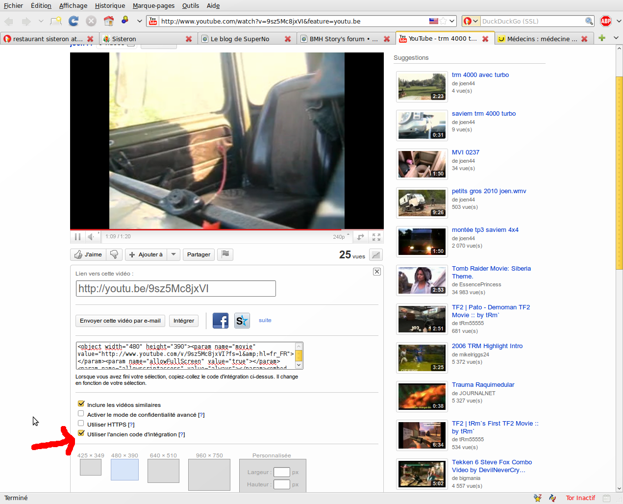 Edit : nouvelle étape depuis les dernières modifications sur youtub' > pour pouvoir intégrer une vidéo directement dans un message il faut utiliser l'ancien code, car le nouveau ne fonctionne pas en "intégration"...