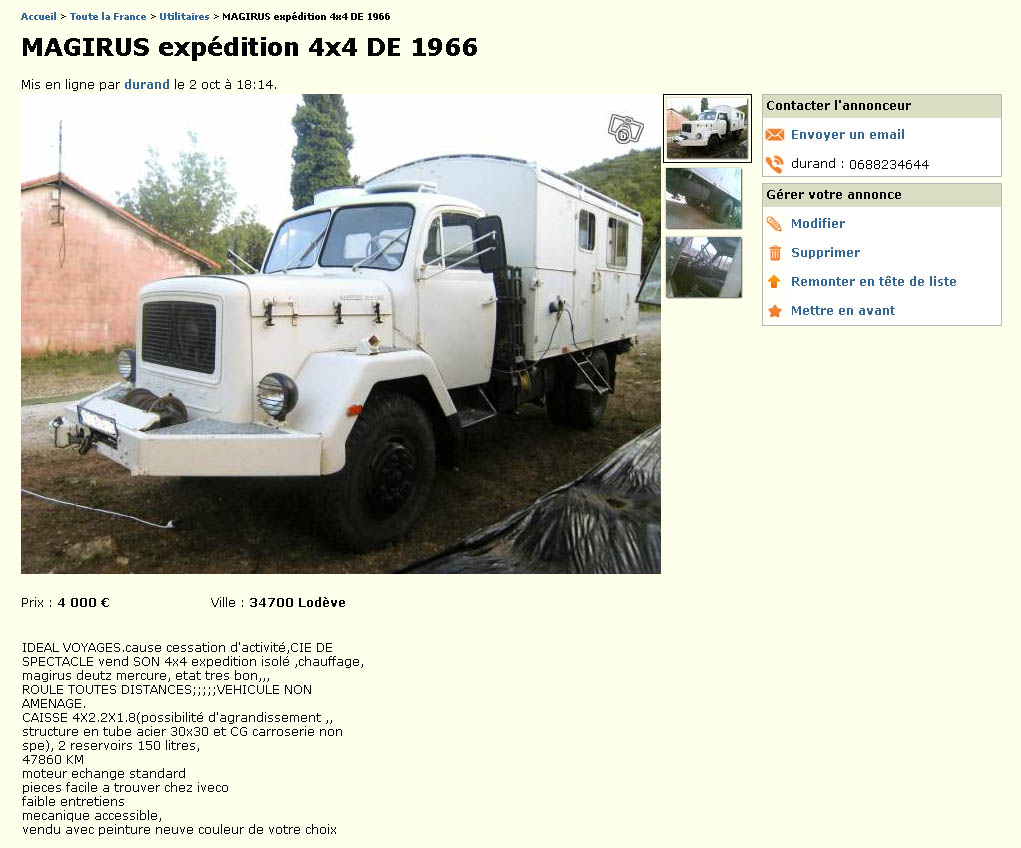 Re: très beau Magirus-Deutz Mercure sur leboncoin