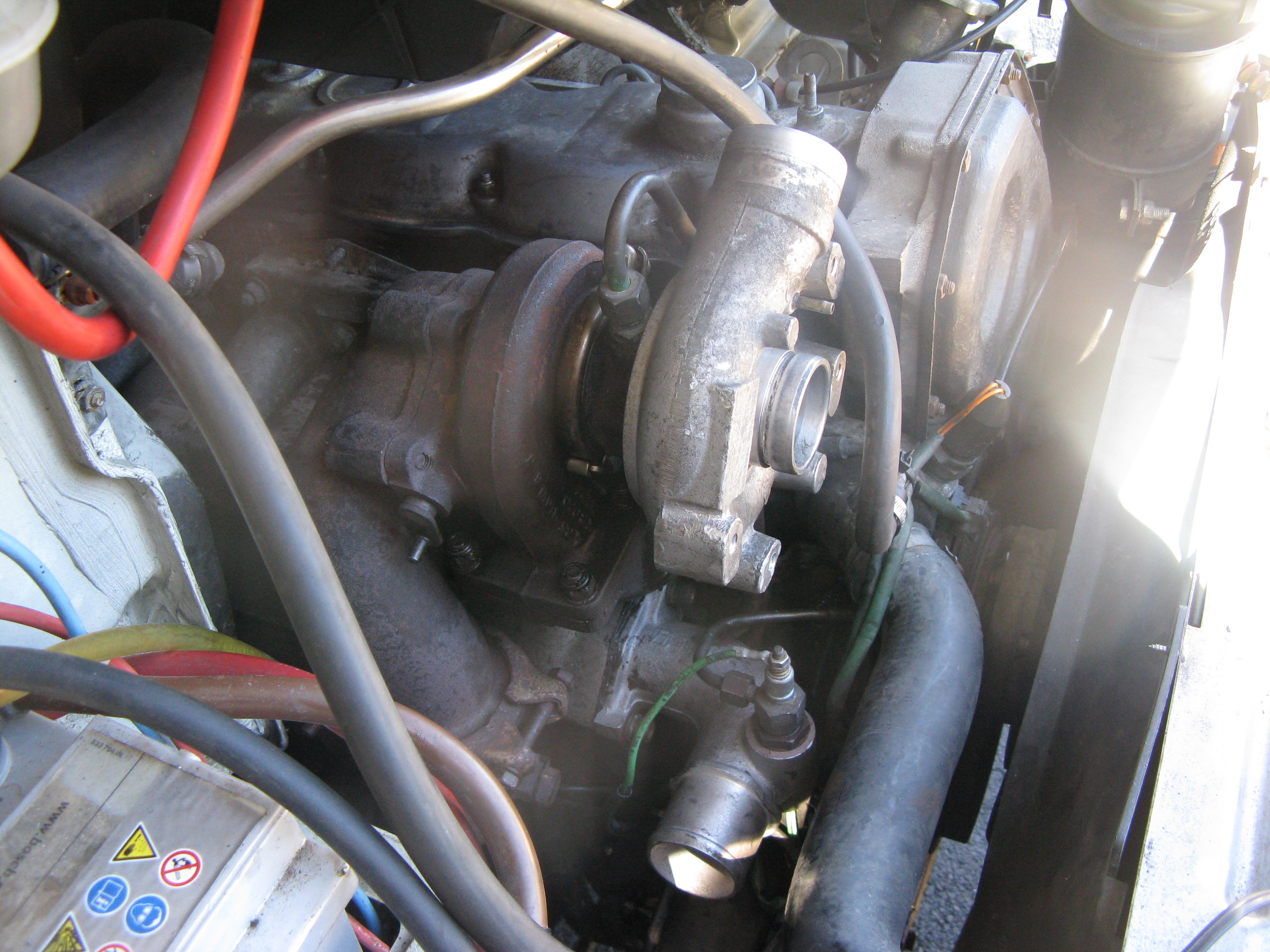 Petit problème : vu que le turbo a dû en prendre un coup vu qu'il "siffle" pas mal, qu'il y a un "point un peu dur" quant on le fait tourner à la main, et qu'il a quand même 20 ans d'âge, mon mecano préconise de le changer pour être tranquille, et quitte à le changer, autant prendre un turbo qui a une sortie "bien orientée" pour le montage de l'intercooler (sans passer par le coude de raccordement tel que le mentionne Bruno Jordan dans son post sur le montage d'un ntercooler), mais Iveco Auxerre semble infoutu d'indiquer quelle référence prendre ...