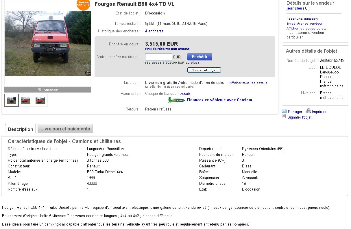 Sujet : Votre annonce "Fourgon 4x4 Renault" sur Leboncoin.fr