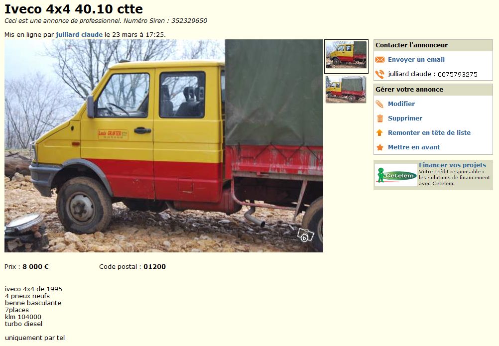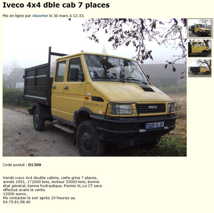 non non pas bizarre... l'annonce était simplement arrivée a expirationThierry a écrit :Tiens revoilà le jaune en double cabine avec sa benne...Bizarre non ? ...