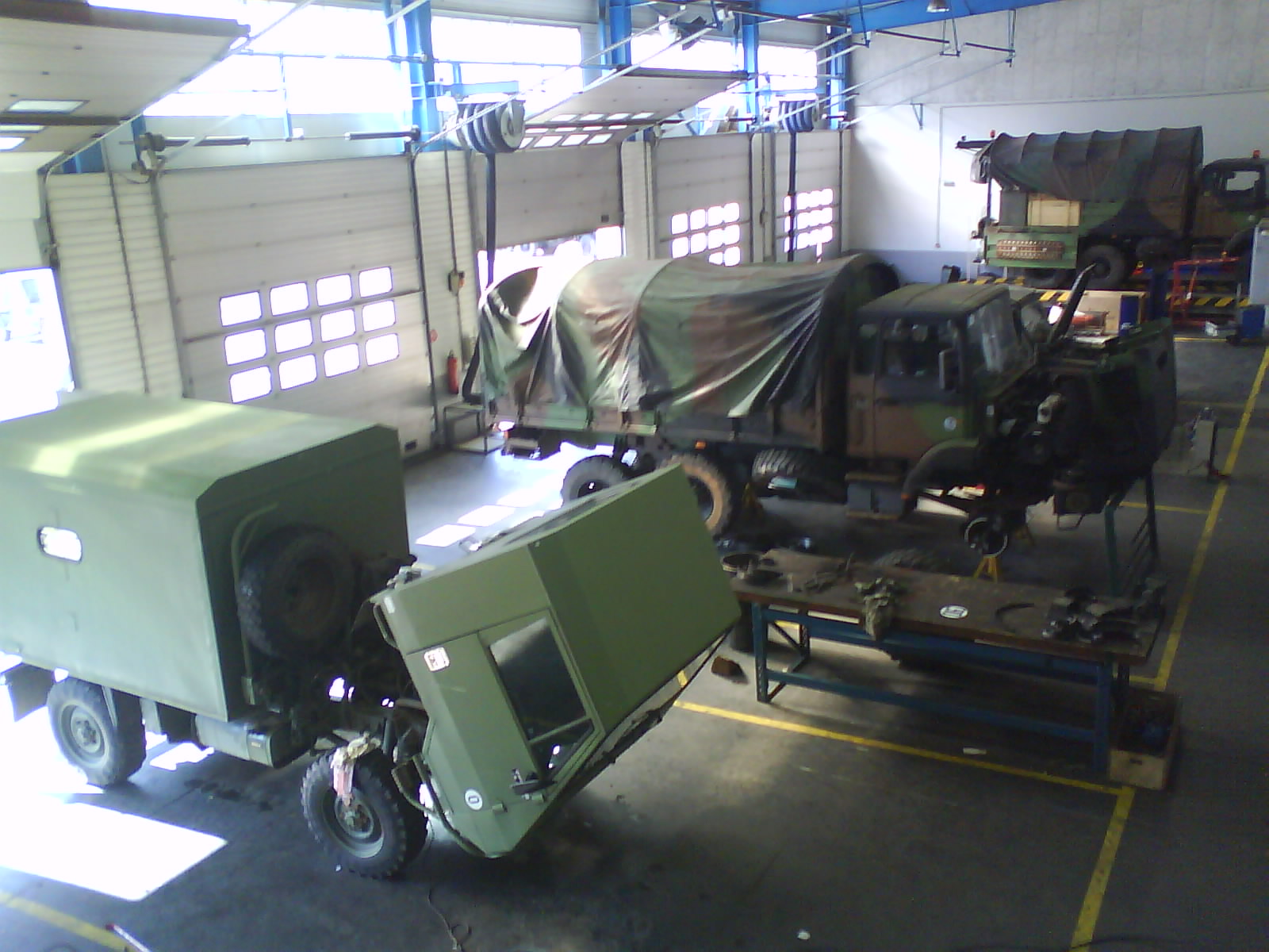 Bon mercredi je descends à l'atelier du régiment, je leur explique les problèmes!! et étant bien pote avec les méca, et curieux, j'ai amené le brimont à l'atelier! il fallait les voir!